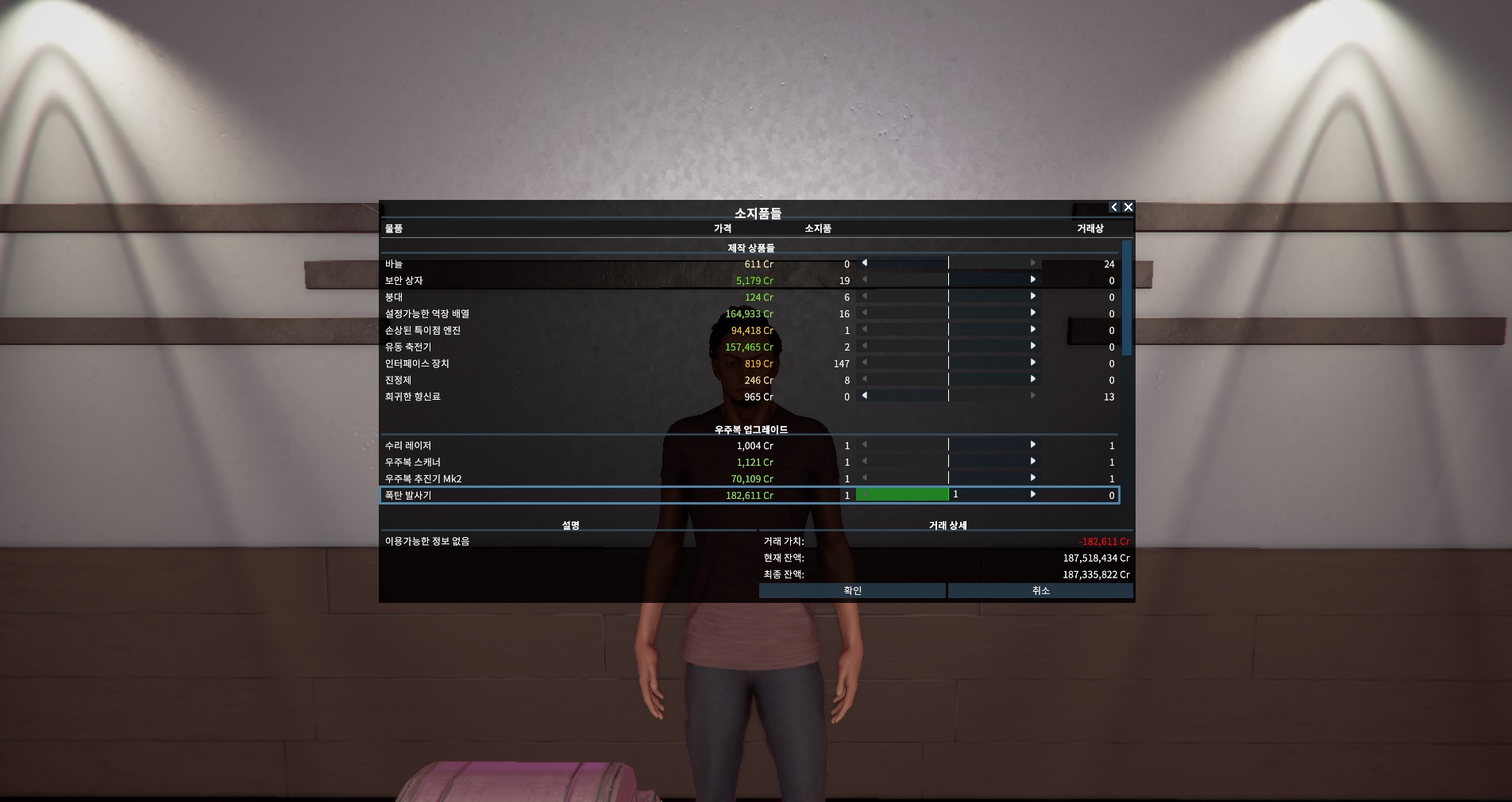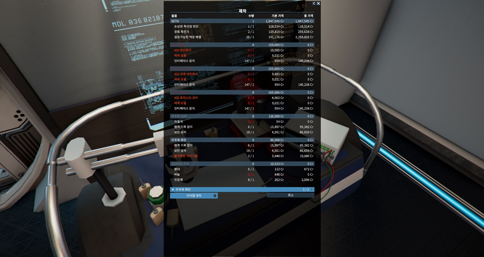 상인코너에 가면 제작대가 있다. 여기서 우주폭탄을 2개 만들자.