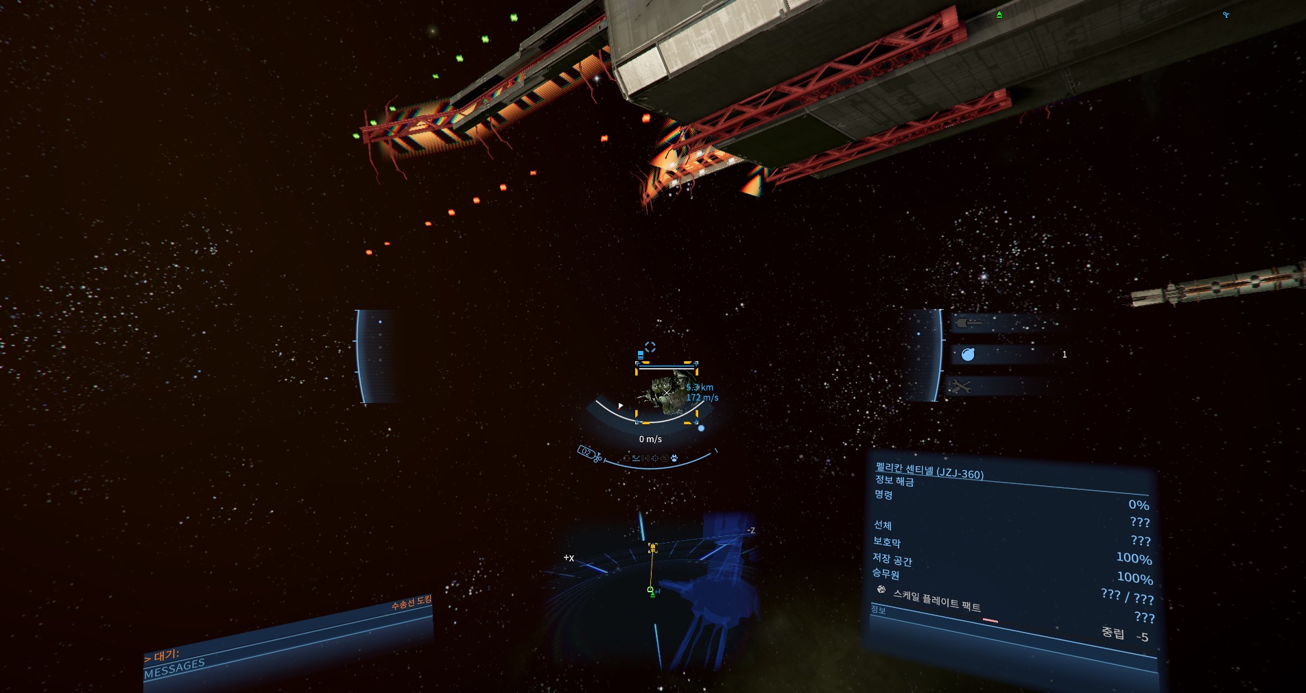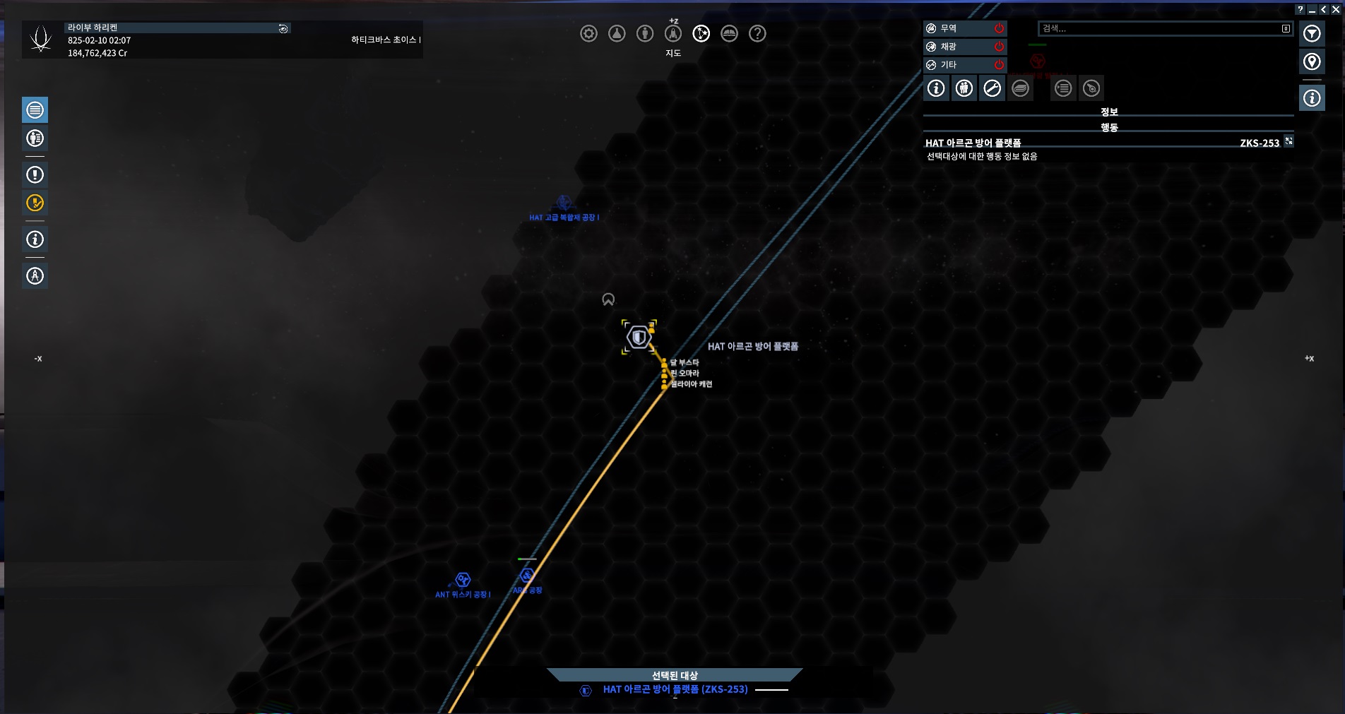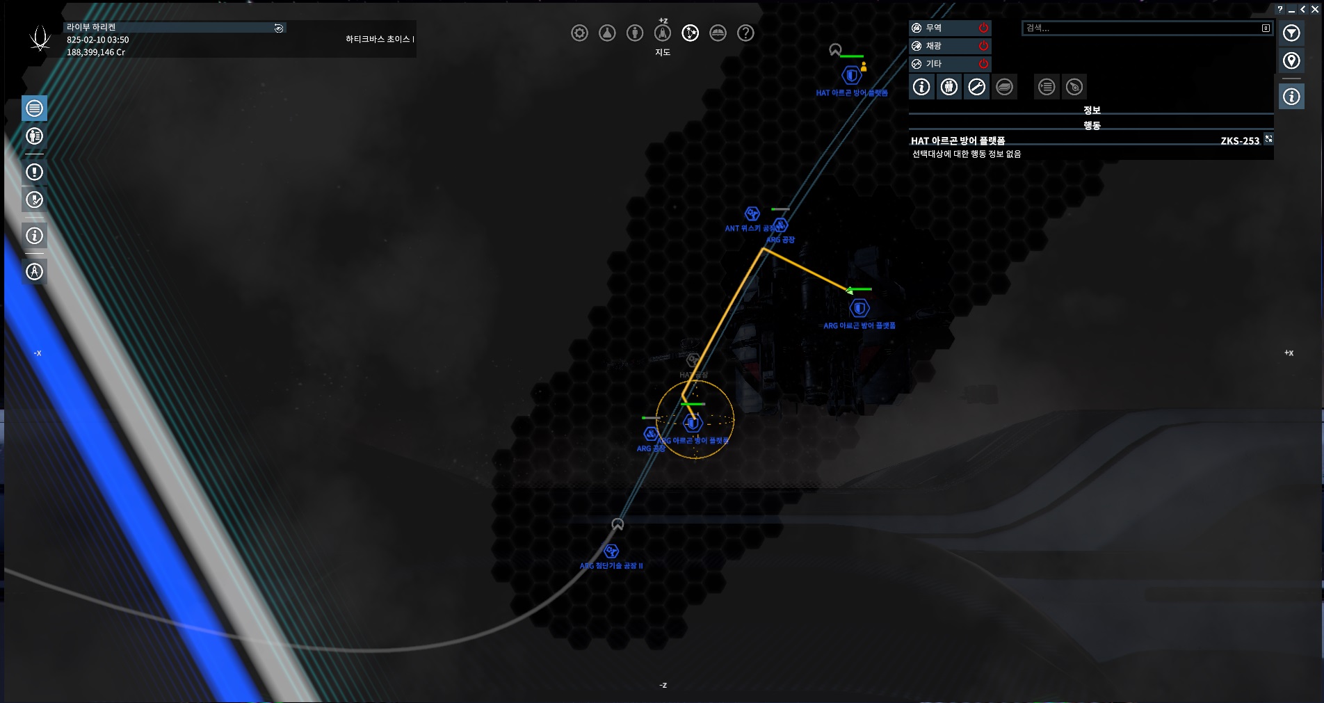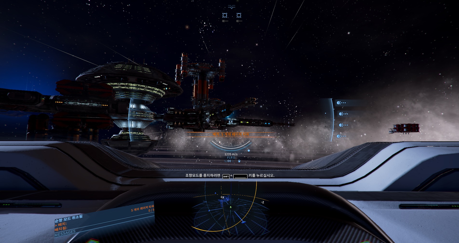 출항을 하게 되면 파괴해야 할 드론이 표시된다. (지금 스테이션 저 모양인건 제논의 침공 때문이다..; 하티크바가 위험한 상황..;;;;) 날라가서 드론을 모두 제거한다.
