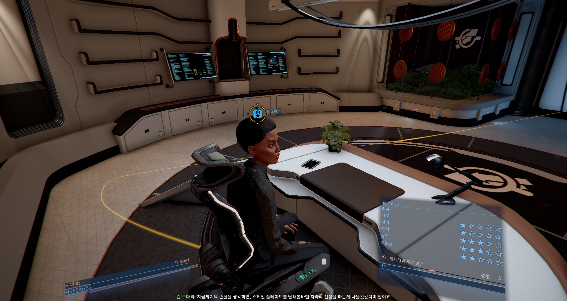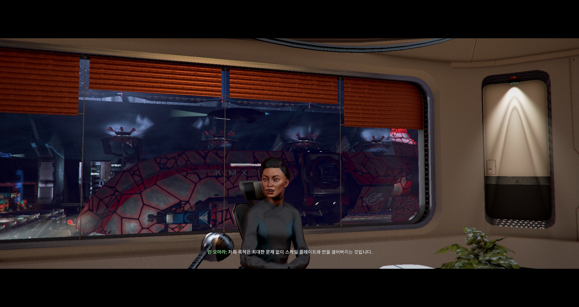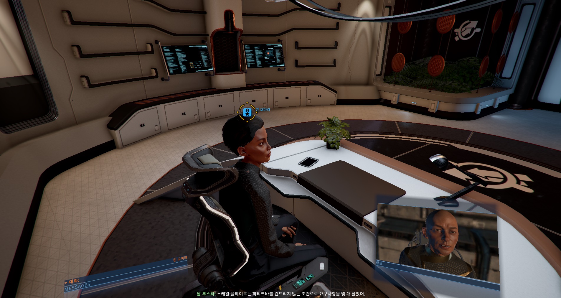 방어 스테이션에 있는 사무실로 진입하게 되면 간단한 컷신이 뜨고 린 오마라가 의약품을 배달 해 달라고 한다.