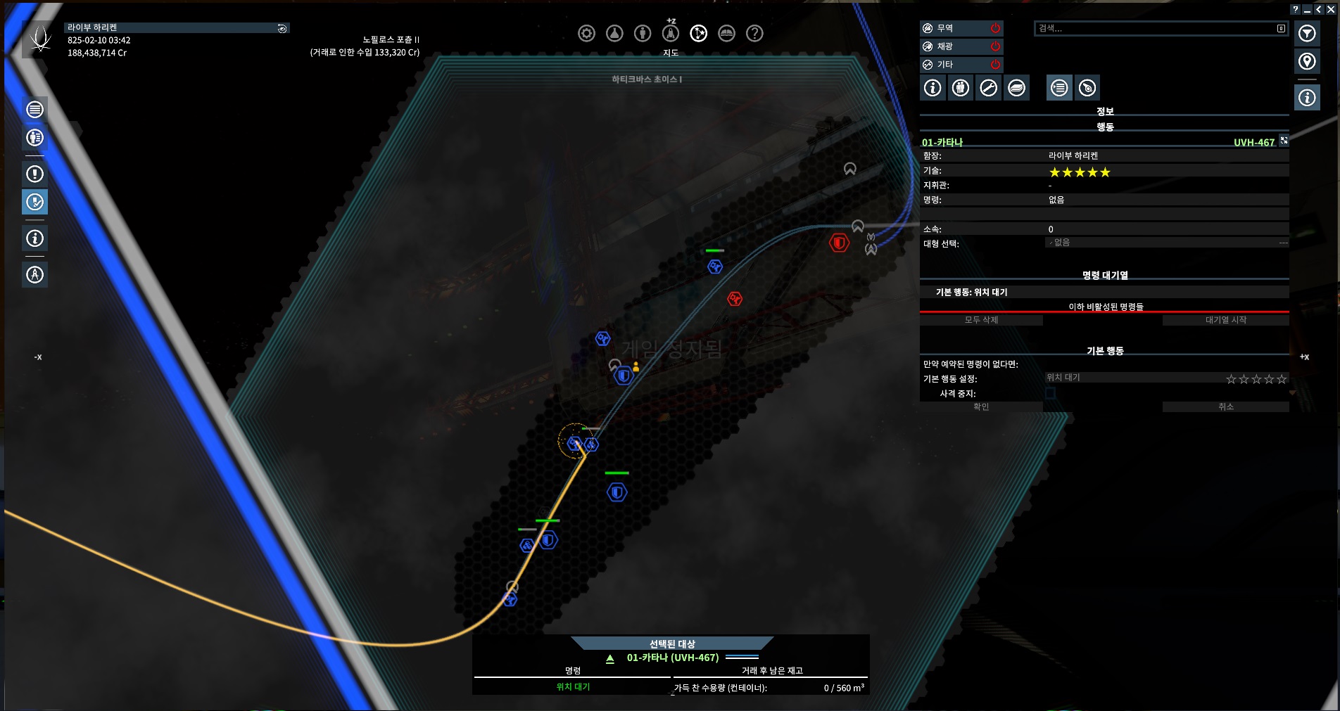보호가 필요한 좌표로 가면 L급 수송선이 한대 있다. 가까이 가면 경고가 뜨고 나포가 되었다고 한다.