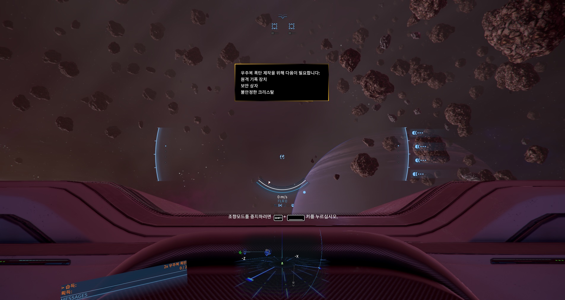 뭘 하려는건지 모르겠으나.. 폭탄 발사기, 우주복 폭탄 2개를 구해야 한다.