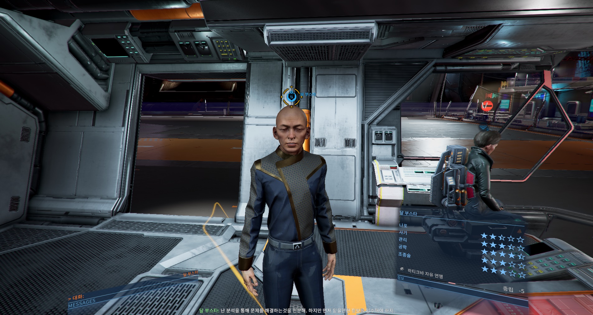 달 부스타와 중위가 만났던 그 스테이션으로 다시 가자. 팩트 비즈니스 센터에 가서 중위와 대화를 하면.. 음?