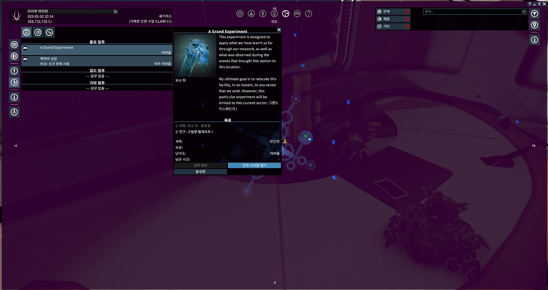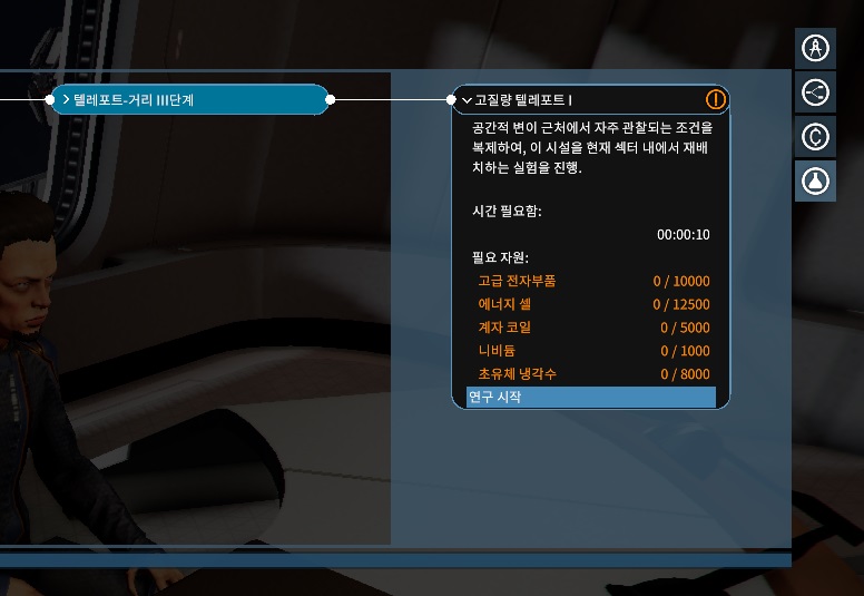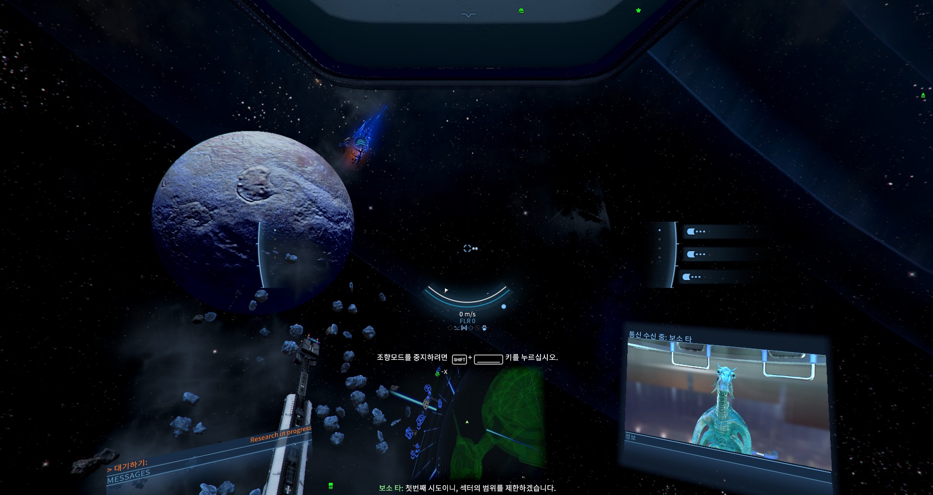 재료를 모아 연구를 완료하면 첫번째 시도이니 항법 비컨을 하나 설치하라고 한다.