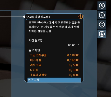 사진처럼 어마어마한 양의 물품을 필요로 하는 연구를 할때 대게 본부의 '저장소(컨테이너, 광물, 액화가스)'에 넣는다. 거기에 넣어야만 재료 충족시 연구를 진행하기 때문이다. 당연한거다.