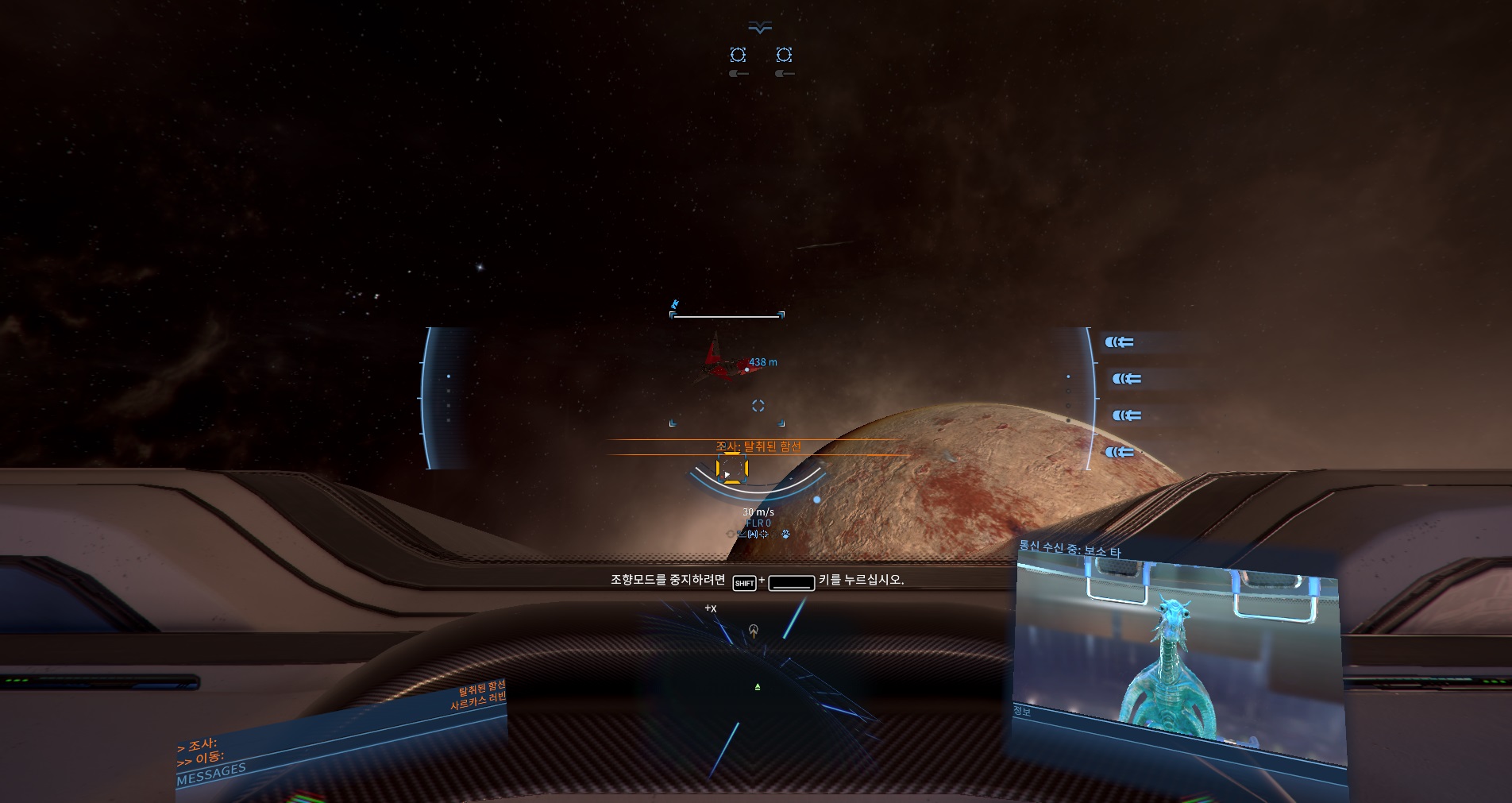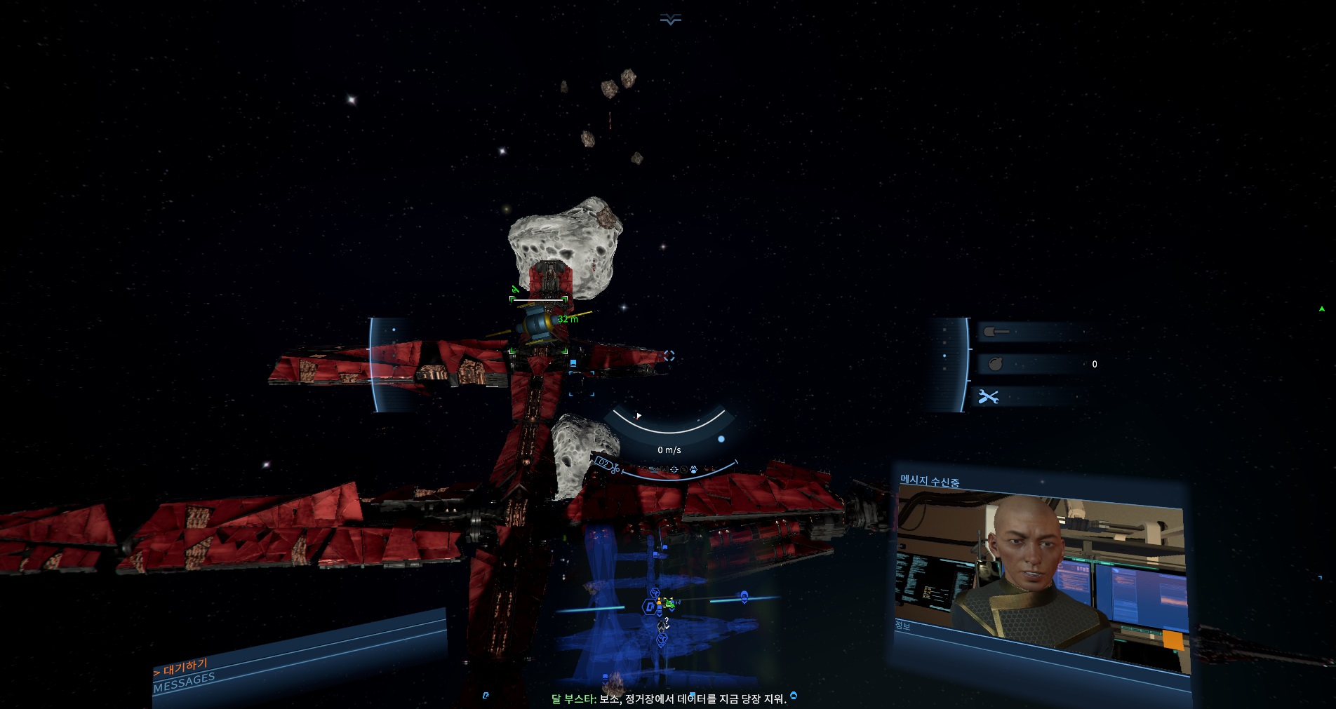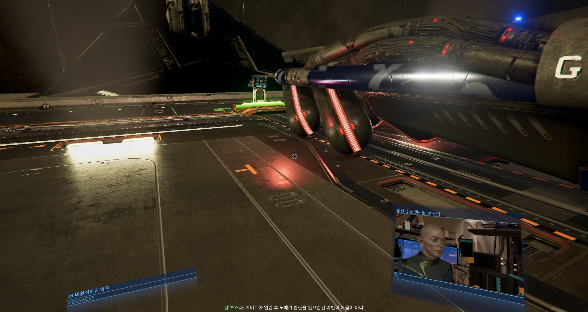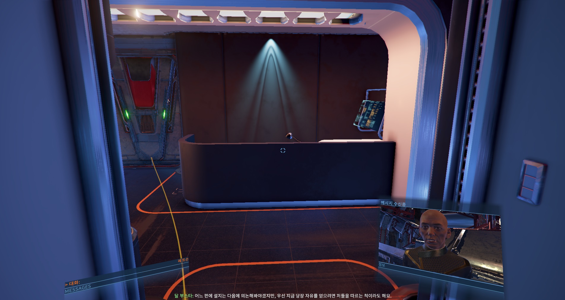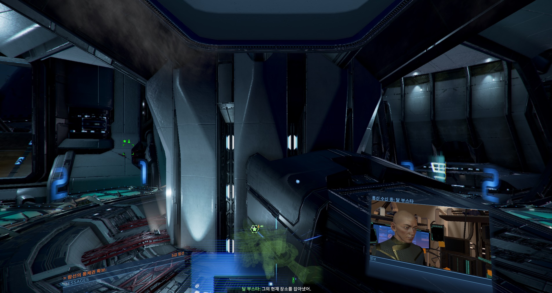 스플릿 섹터 보안대에 걸리고.. 탑승객은.. 그대로 잡혀간 모양이다. 헌데, 번역이 뭔가 좀 이상하다. 무슨 의미인지 알 수가 없다!!! 바우는 하여튼 새로운 위치를 전송해준다. 함선에서 내리면 달 부스타가 통신을 한다.