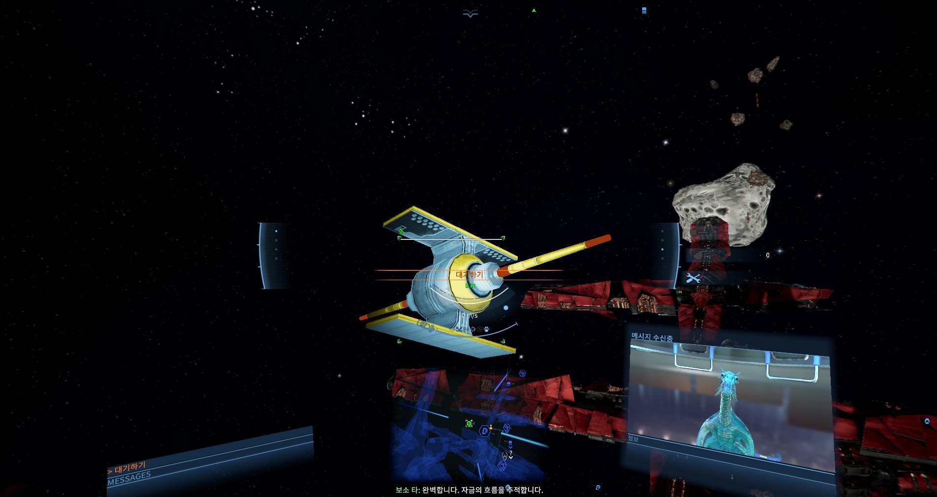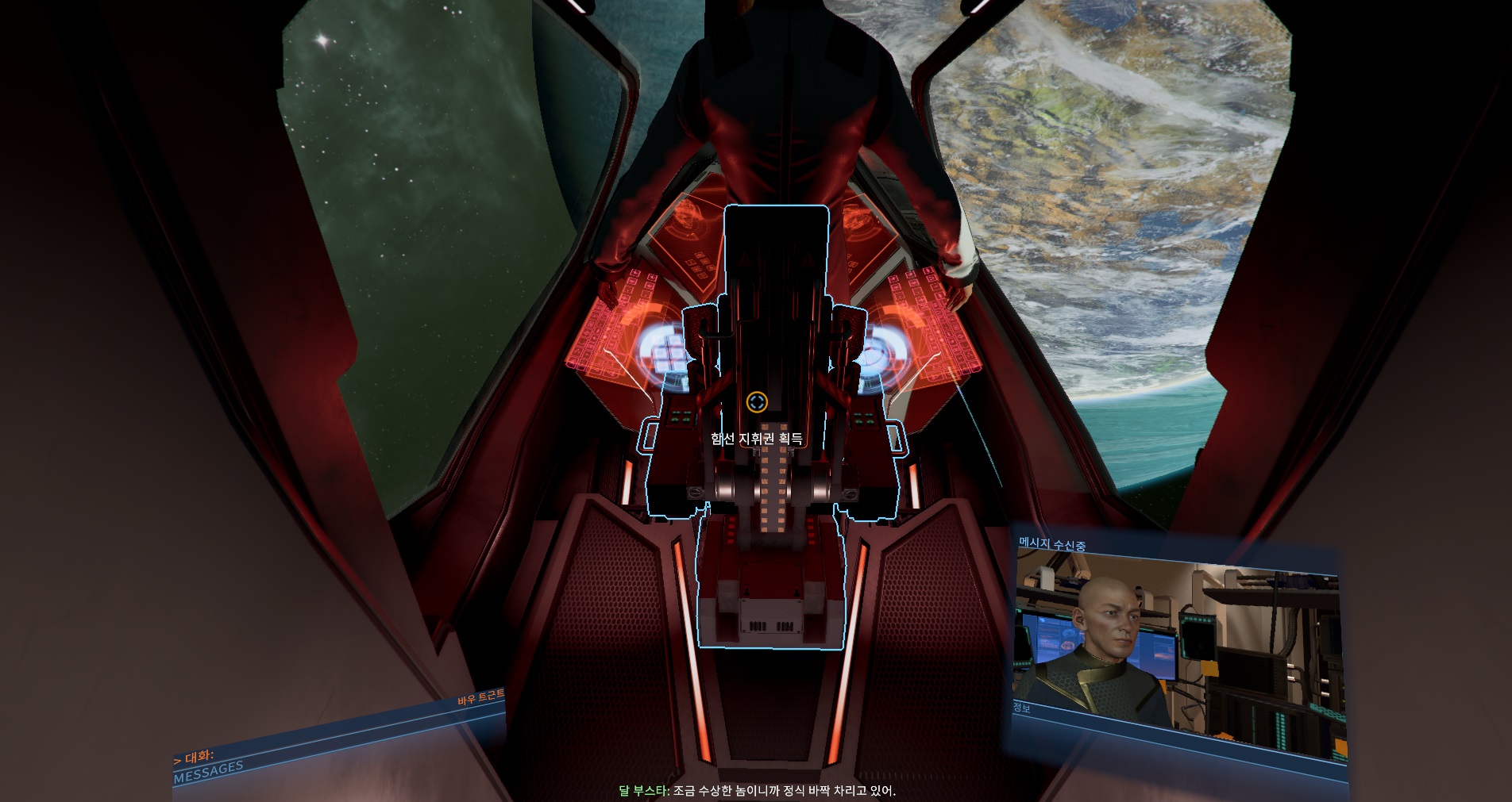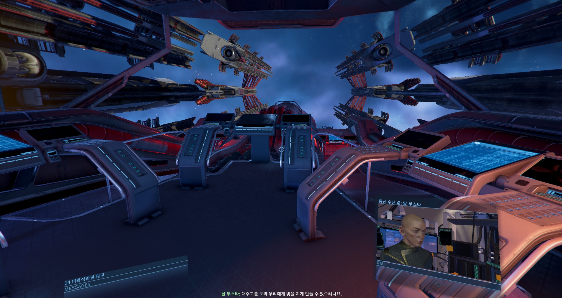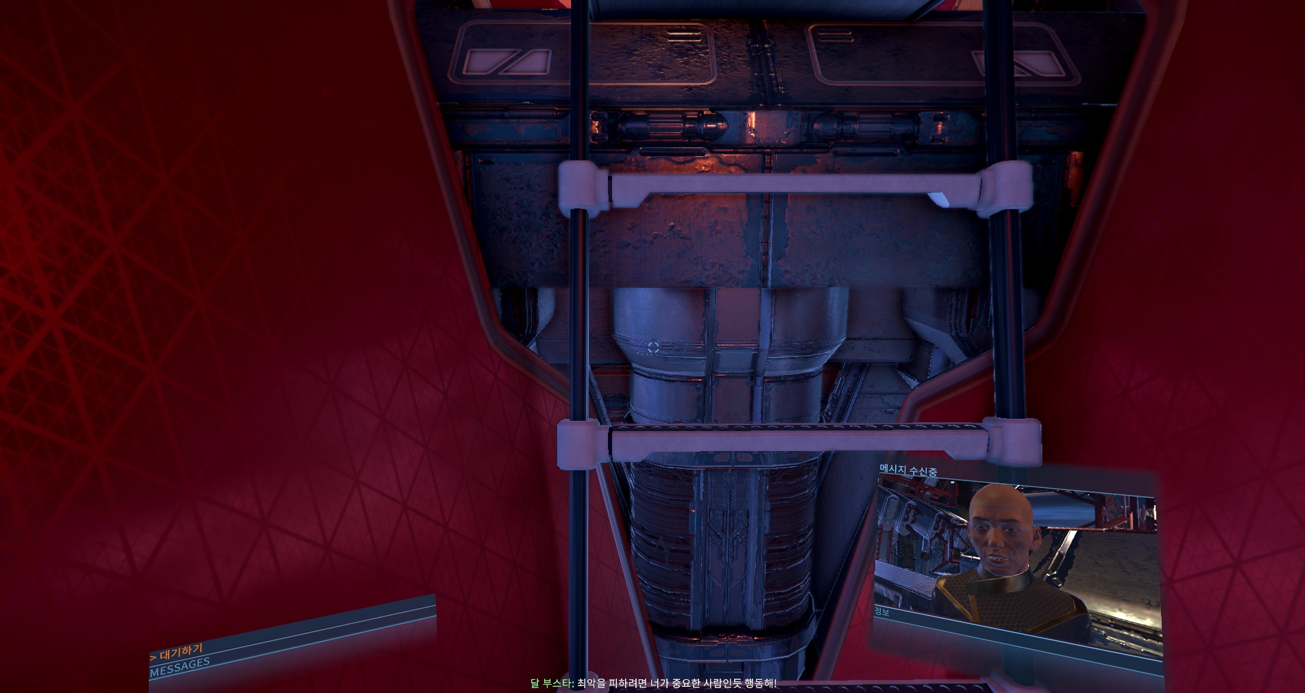 스플릿 섹터 보안대에 걸리고.. 탑승객은.. 그대로 잡혀간 모양이다. 헌데, 번역이 뭔가 좀 이상하다. 무슨 의미인지 알 수가 없다!!! 바우는 하여튼 새로운 위치를 전송해준다. 함선에서 내리면 달 부스타가 통신을 한다.