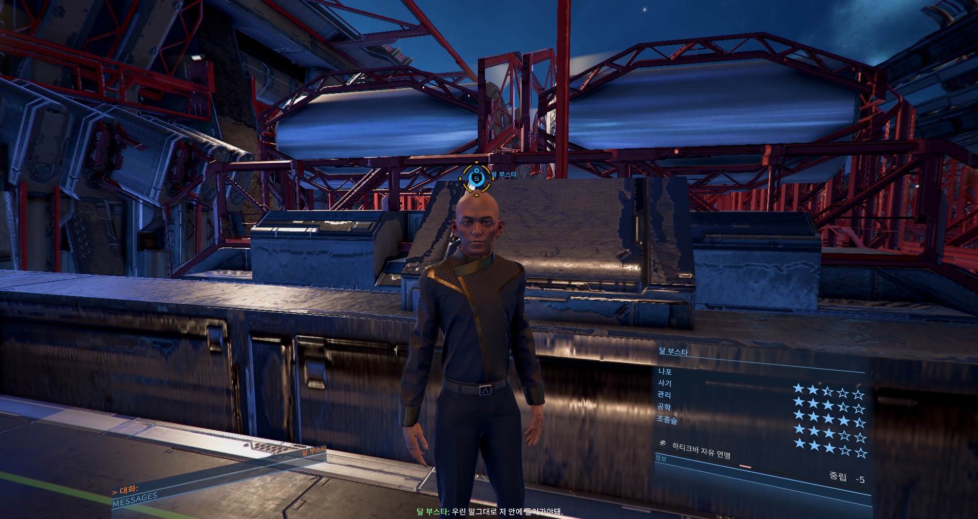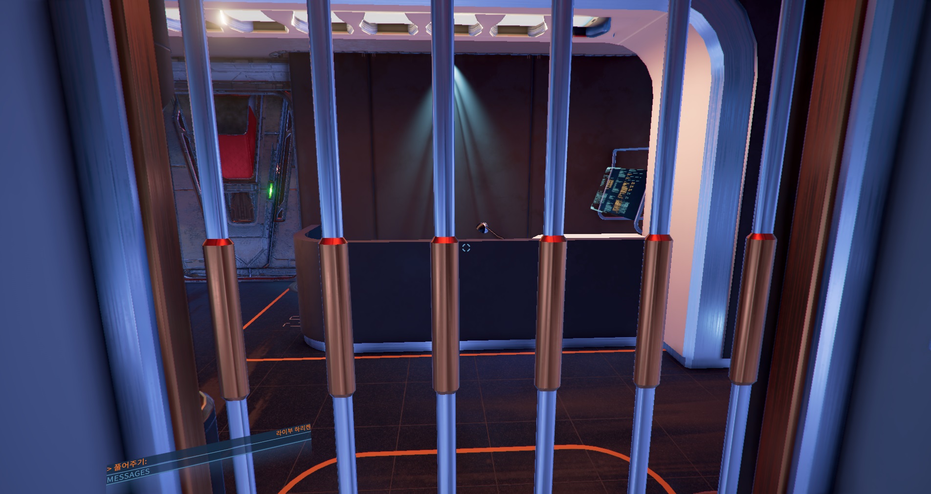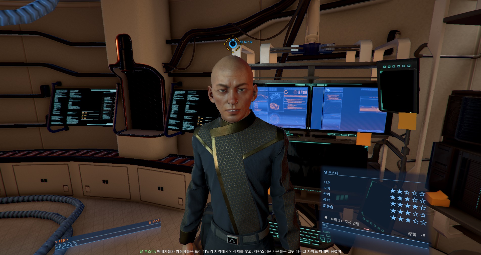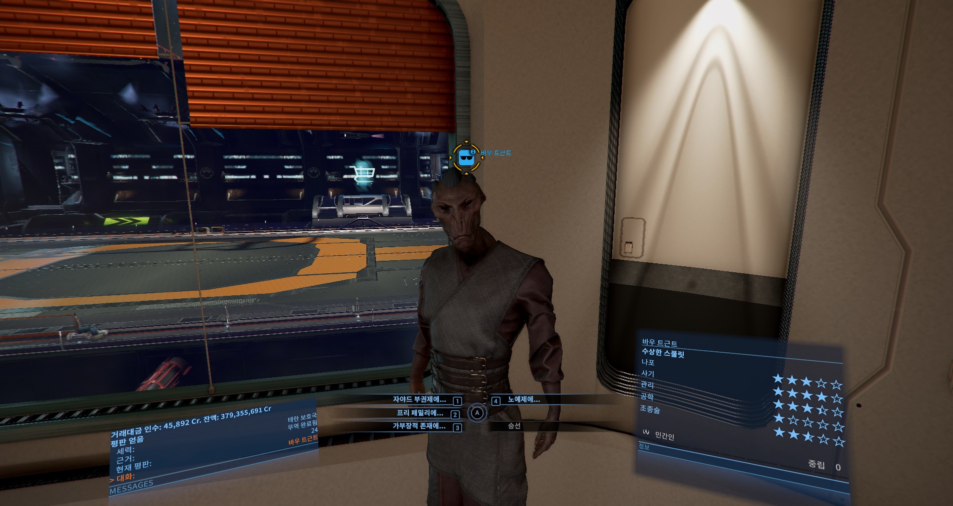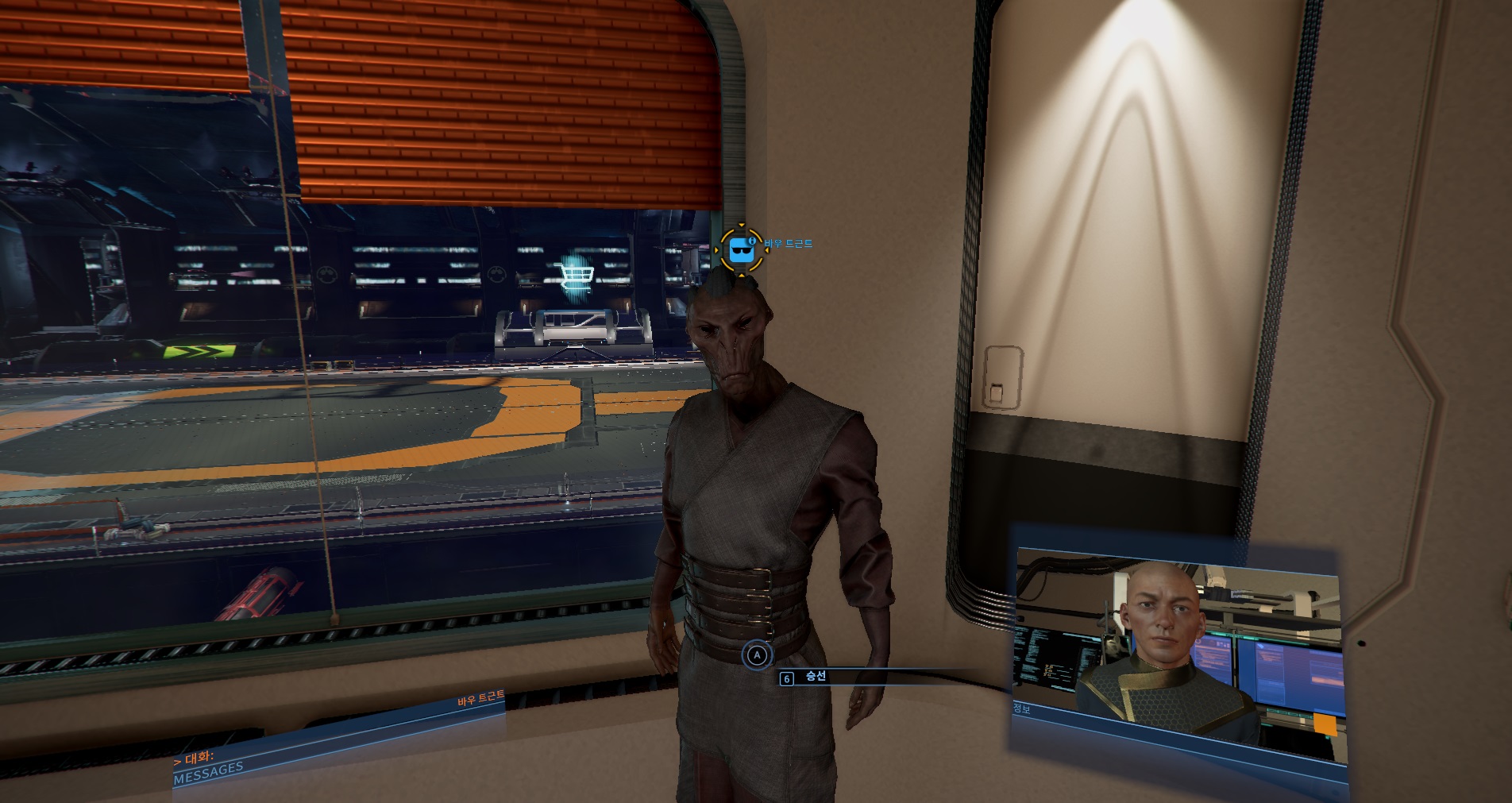 스플릿 섹터 보안대에 걸리고.. 탑승객은.. 그대로 잡혀간 모양이다. 헌데, 번역이 뭔가 좀 이상하다. 무슨 의미인지 알 수가 없다!!! 바우는 하여튼 새로운 위치를 전송해준다. 함선에서 내리면 달 부스타가 통신을 한다.