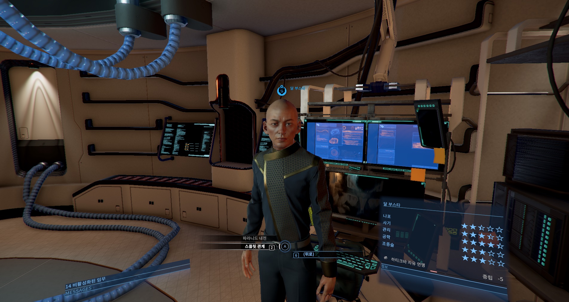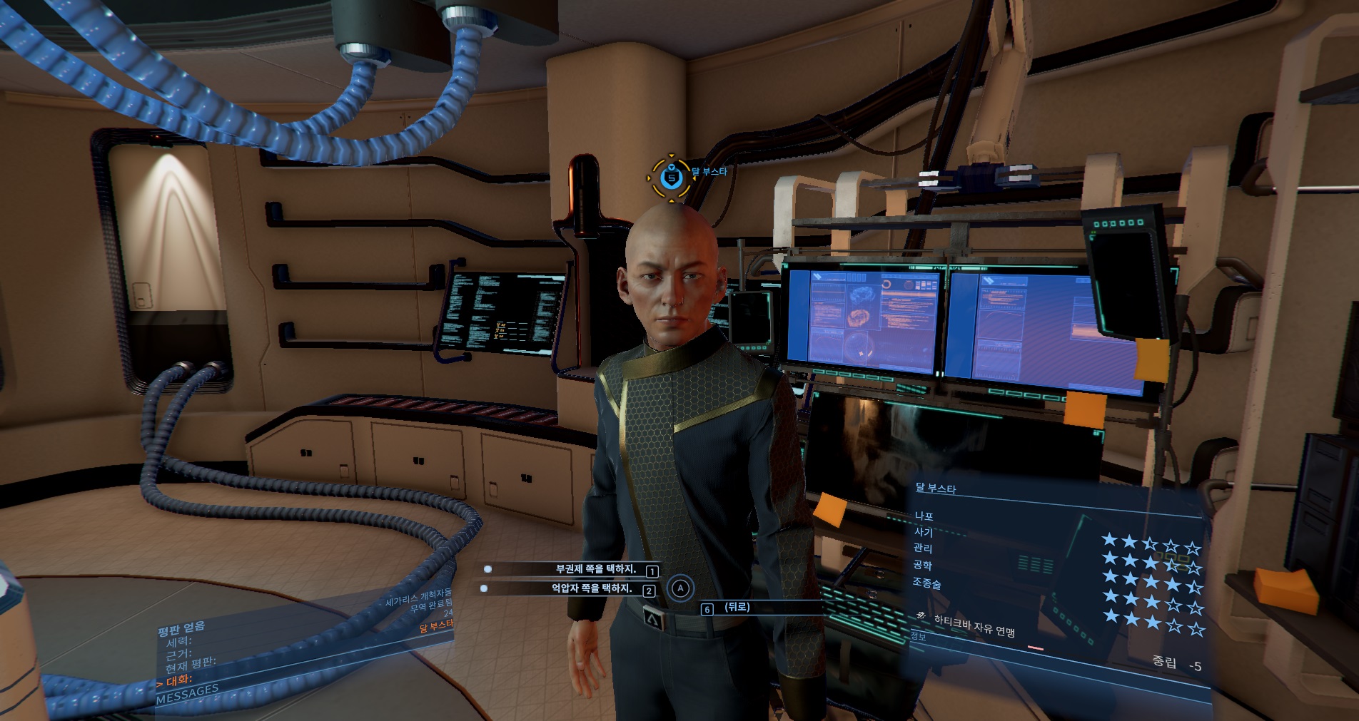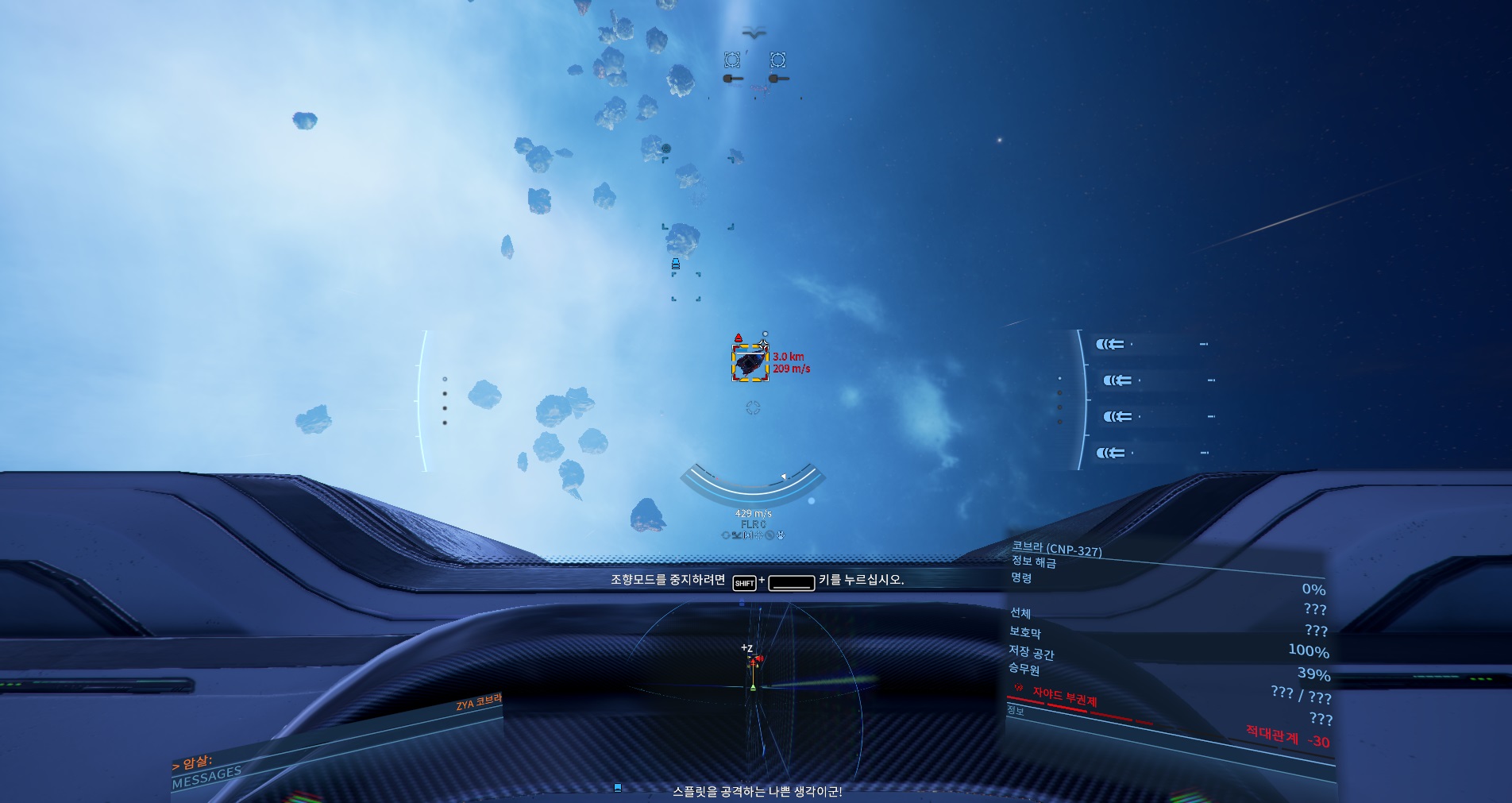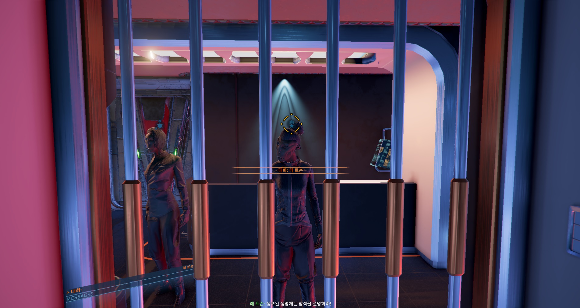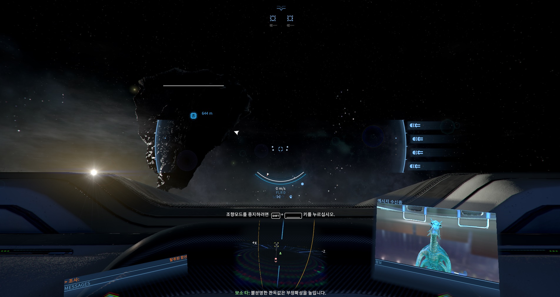 스플릿 섹터 보안대에 걸리고.. 탑승객은.. 그대로 잡혀간 모양이다. 헌데, 번역이 뭔가 좀 이상하다. 무슨 의미인지 알 수가 없다!!! 바우는 하여튼 새로운 위치를 전송해준다. 함선에서 내리면 달 부스타가 통신을 한다.