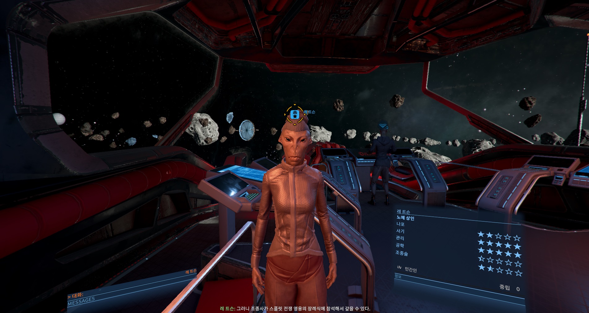 함장과 얘기하면 자신들의 동족을 구해줘서 고맙다며(꼴랑 우호도 1 올려준다) 전쟁 영웅 장례식에 참석하라고 한다. 관습에 따라 우주파리 캐비어도 가져오라는데...; 혹시나 어디 필요한데 있을까 싶어서 안 팔고 기지에 모아놓길 잘했네.