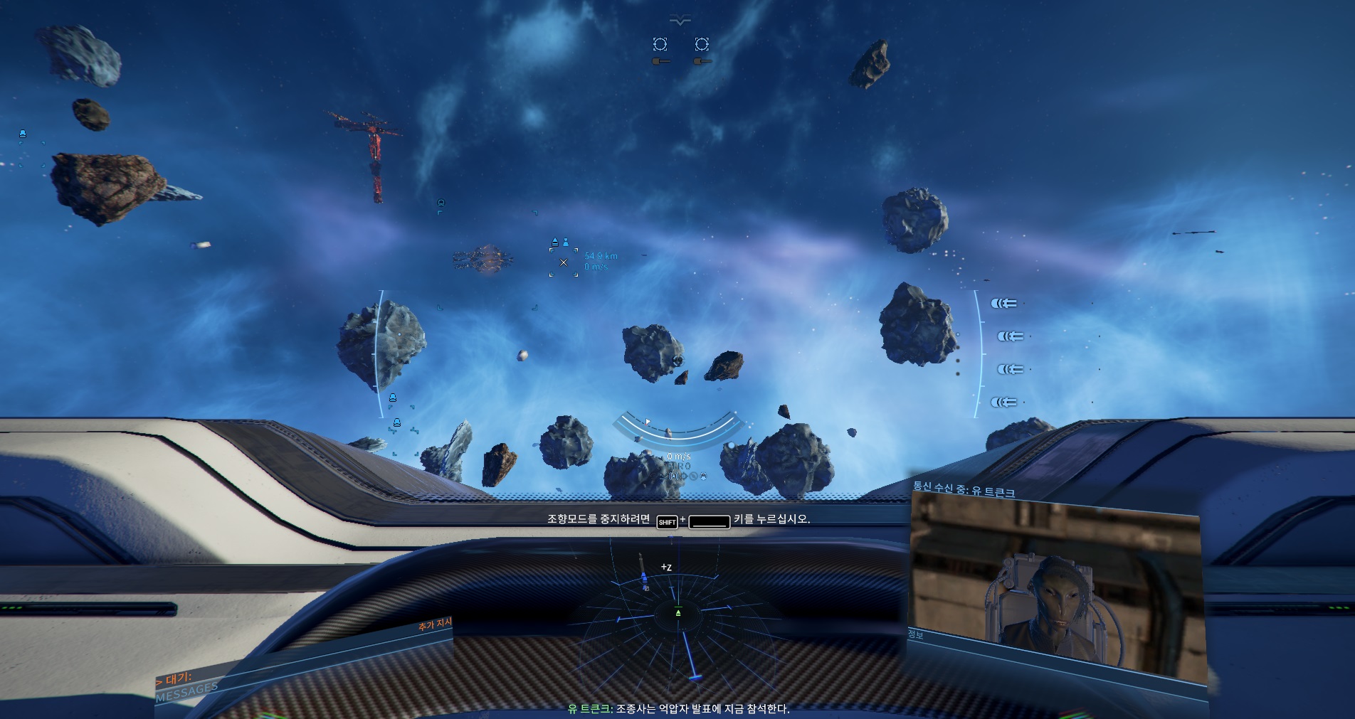 그리고 함선으로 다시 돌아오면 억압자의 컷신이 나오는데, 아직 번역이 안되서 영어로 나오는데, 대충 아까 지급 받은 함대를 끌고나가서 다 깨부수자, 해방하자.. 뭐 그런 의미이지 싶다만...;
