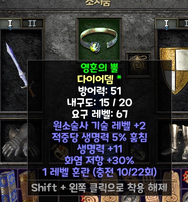 다이어뎀의 위력인가? 흰색 템이 나왔길레 돌리기용으로 써야지 싶어서 만들었는데.. 그래도 소서 2스킬짜리다!