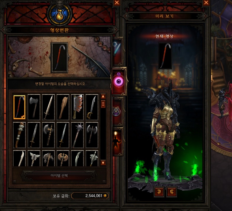 디아블로3를 그렇게 오래 했겄만.. 이런 형상변환 아이템이 있었는 줄은, 오늘 처음 알았다.