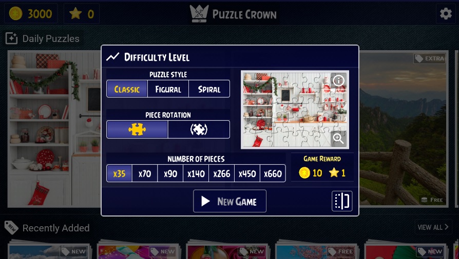5번은 퍼즐을 직접 제작하는건데, 필요 코인이 생각보다 작다. 450조각이 140코인(회전없는 일반 난이도)이니 한번 맞추고 나면 2개의 퍼즐을 만들 수 있다는 소리다. (초기 지급 코인도 3000코인!)