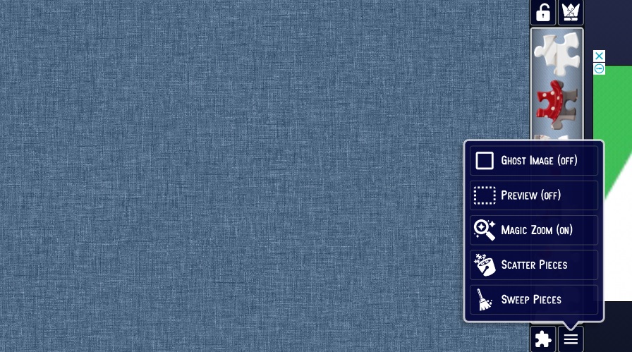 모서리 부분(퍼즐 모양이 모서리 부분으로 변경)만 보여주거나 전체 퍼즐을 보여주는걸 선택 할 수 있다.