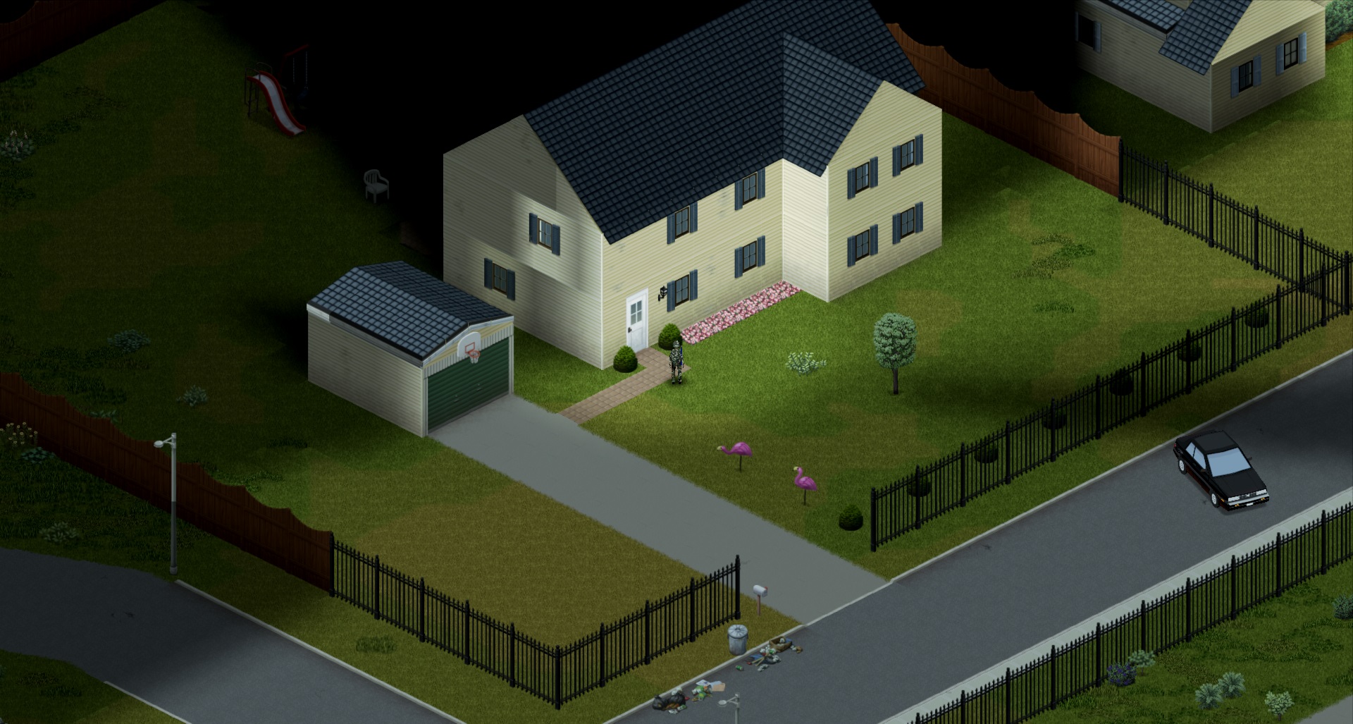 흔히 볼 수 있는 2층 주택의 경우 낮은 울타리로 쳐져 있어 좀비들이 마구마구 넘어오기 쉽다. 하지만 위 사진과 같이 고오급 주택들은 좀비들이 넘어오지 못하는 울타리(단 우리는 넘어갈 수 있다)가 둘러 쳐진 곳이 있다.