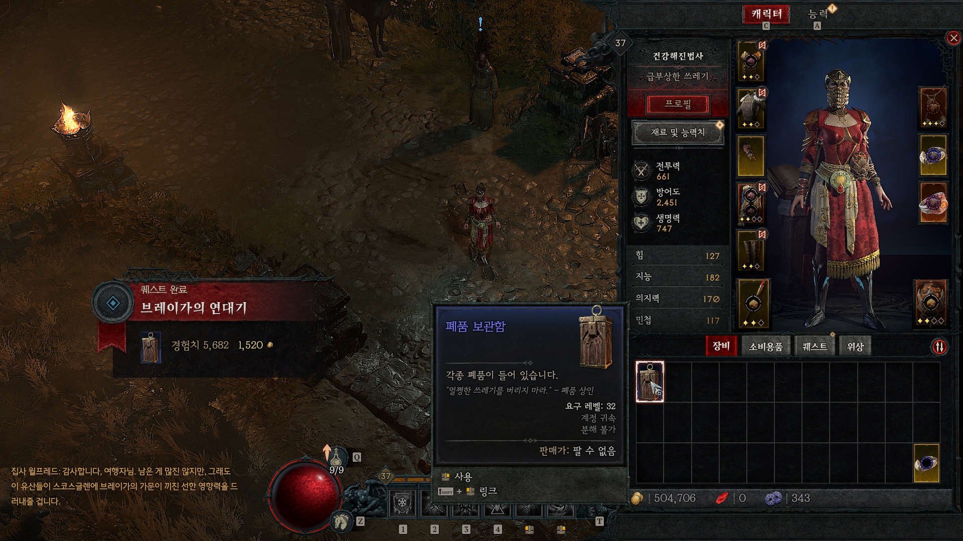 월프레드에게 책을 건네주면 폐품 보관함을 준다. 까보니 '미지의 수정' 달랑 1개 준다.