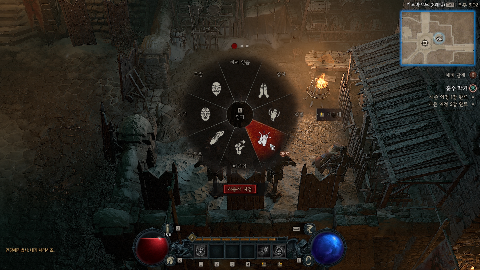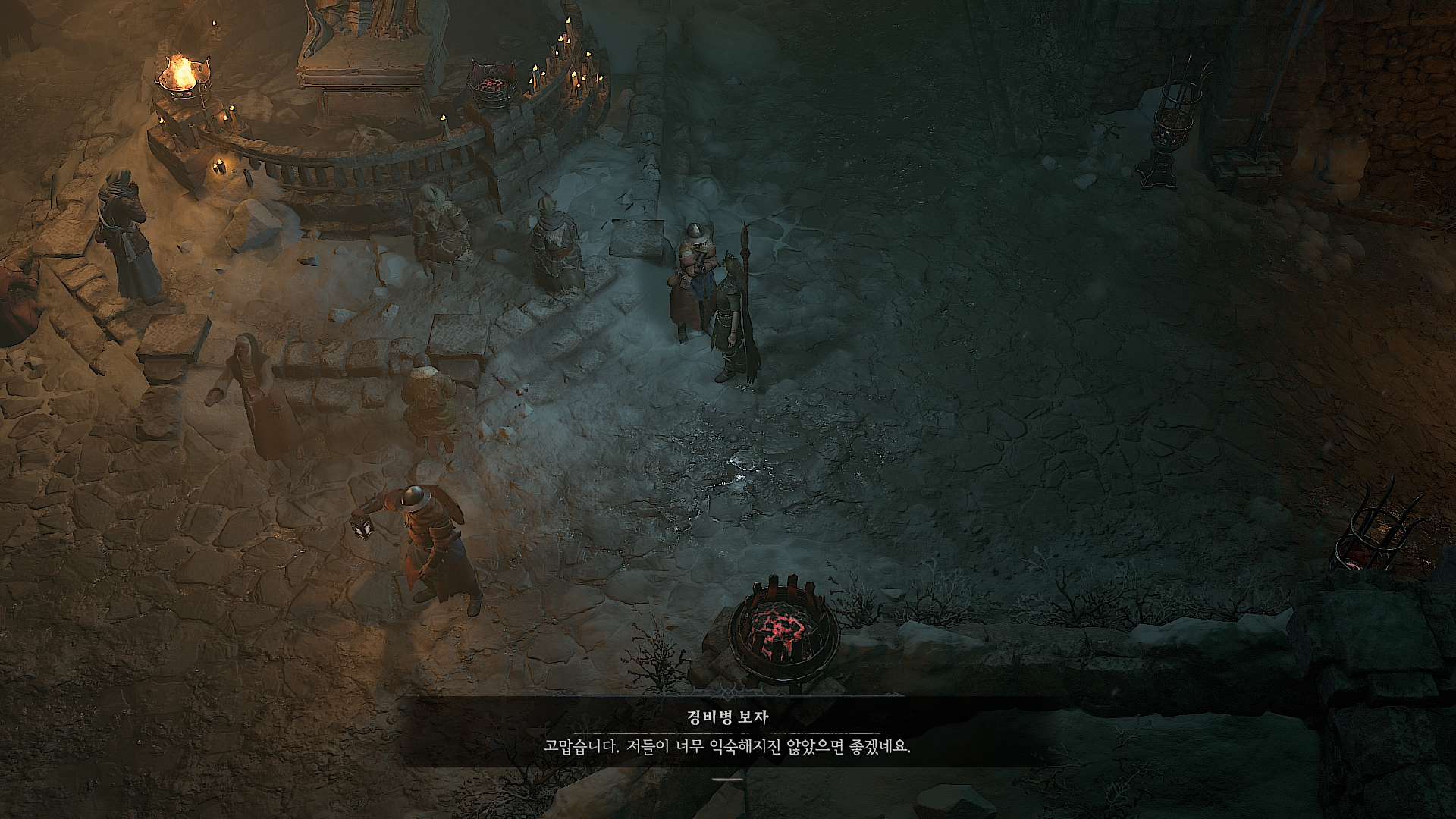 보자의 오른쪽 위, 열심히 허수아비를 때리는 경비병들에 감정 표현으로 '환호'를 해 주자.