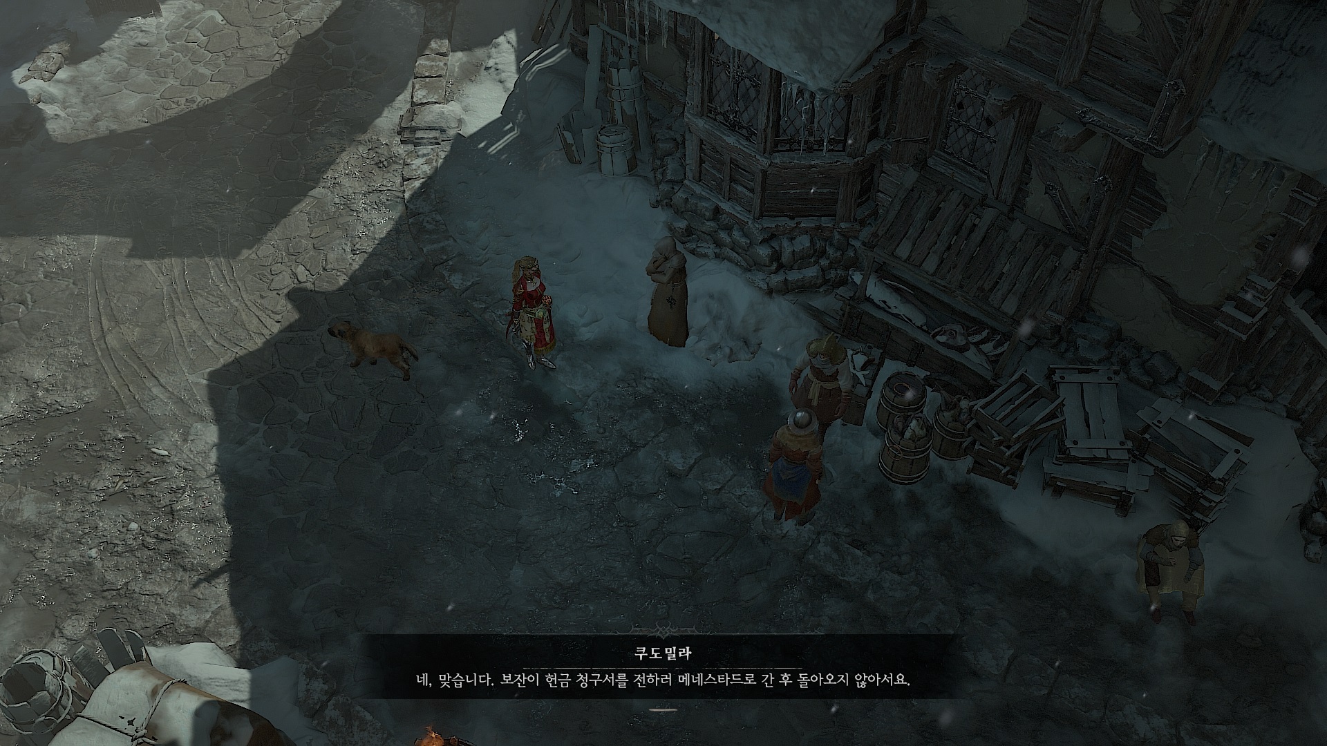 키요바사드의 쿠도밀라에게서 받을 수 있는 퀘스트, 헌금 징수원이 납부기한을 넘겨서 초조해 하고 있다.