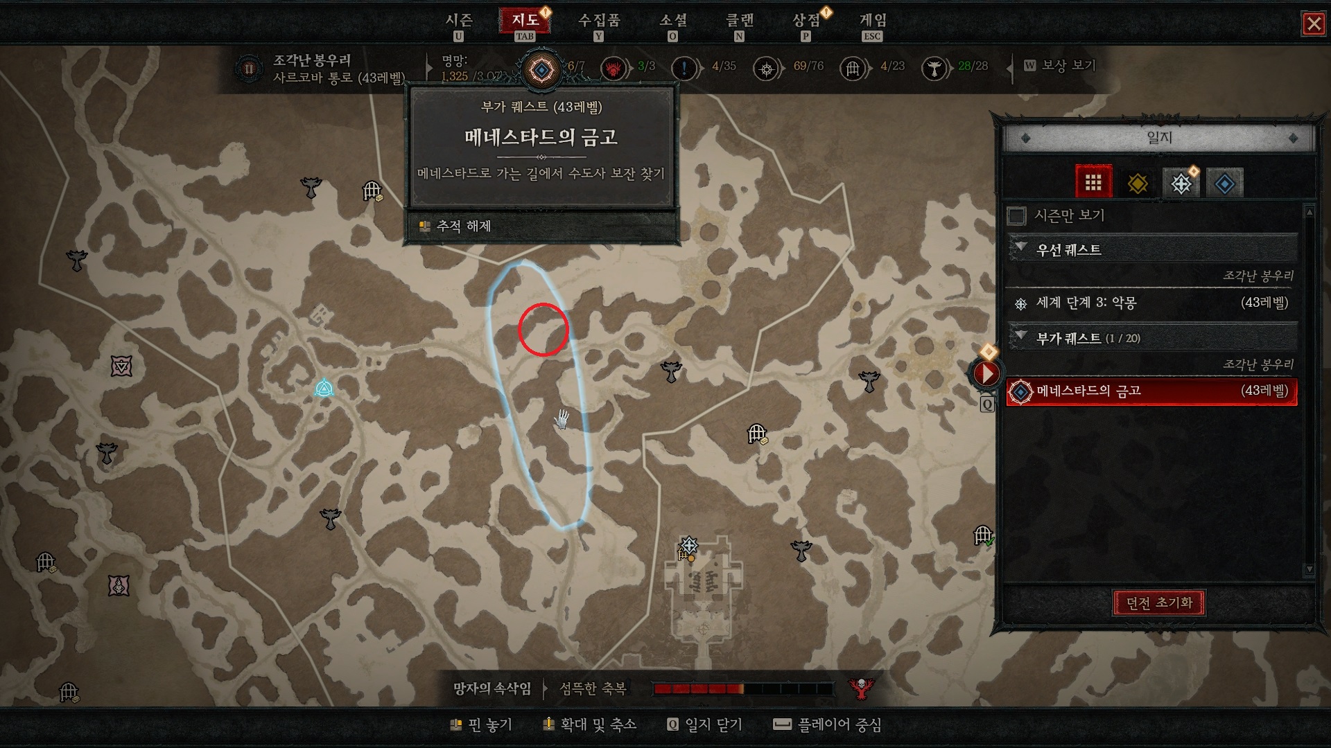 보잔을 찾아야 할 범위지만, 빨간원이 된 곳으로 가면 있다.