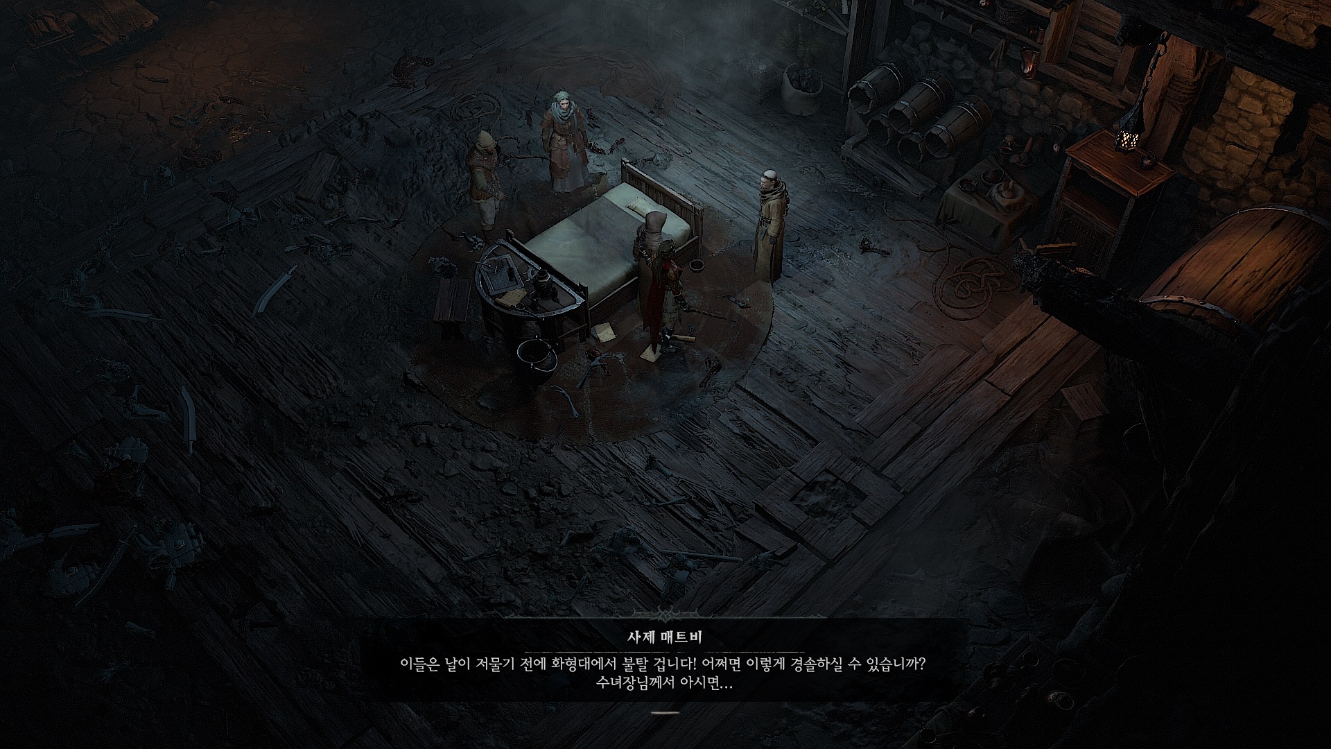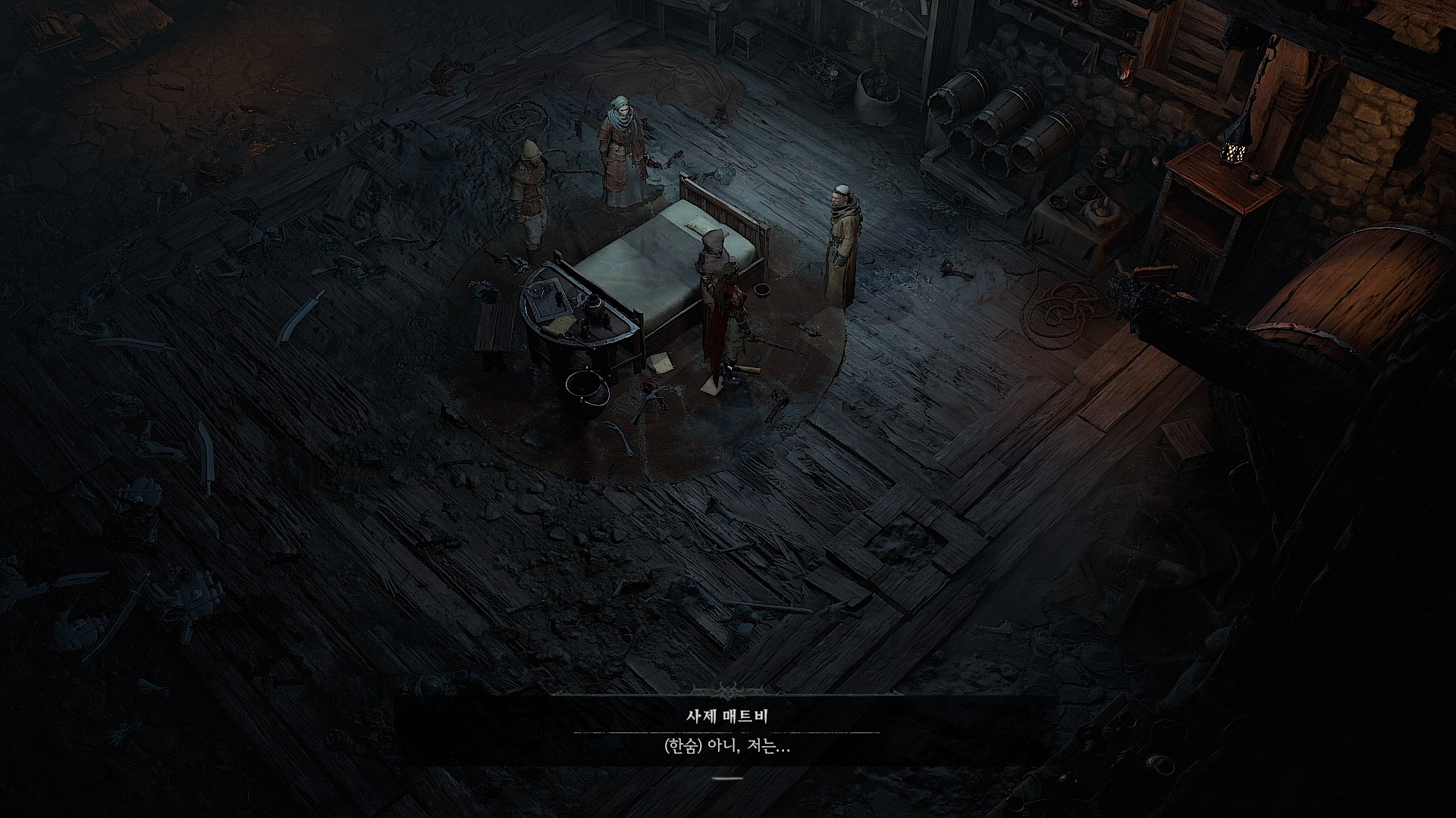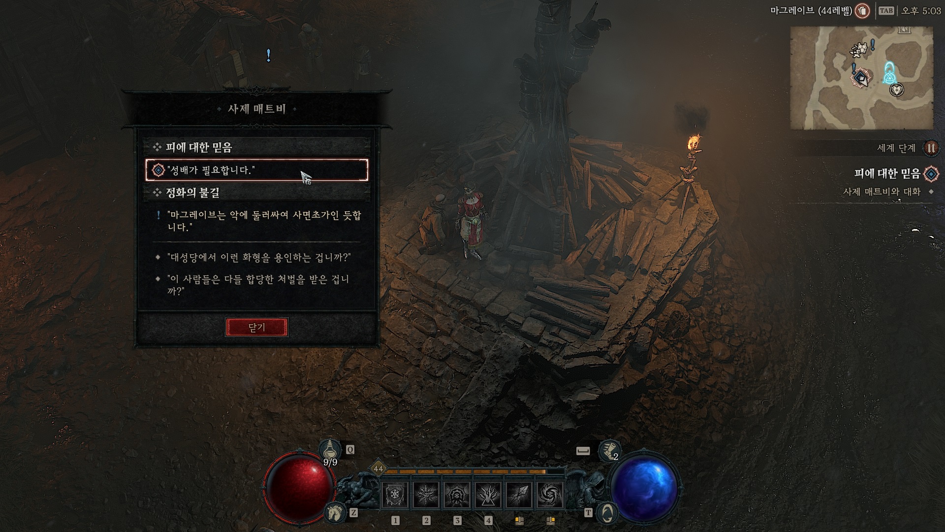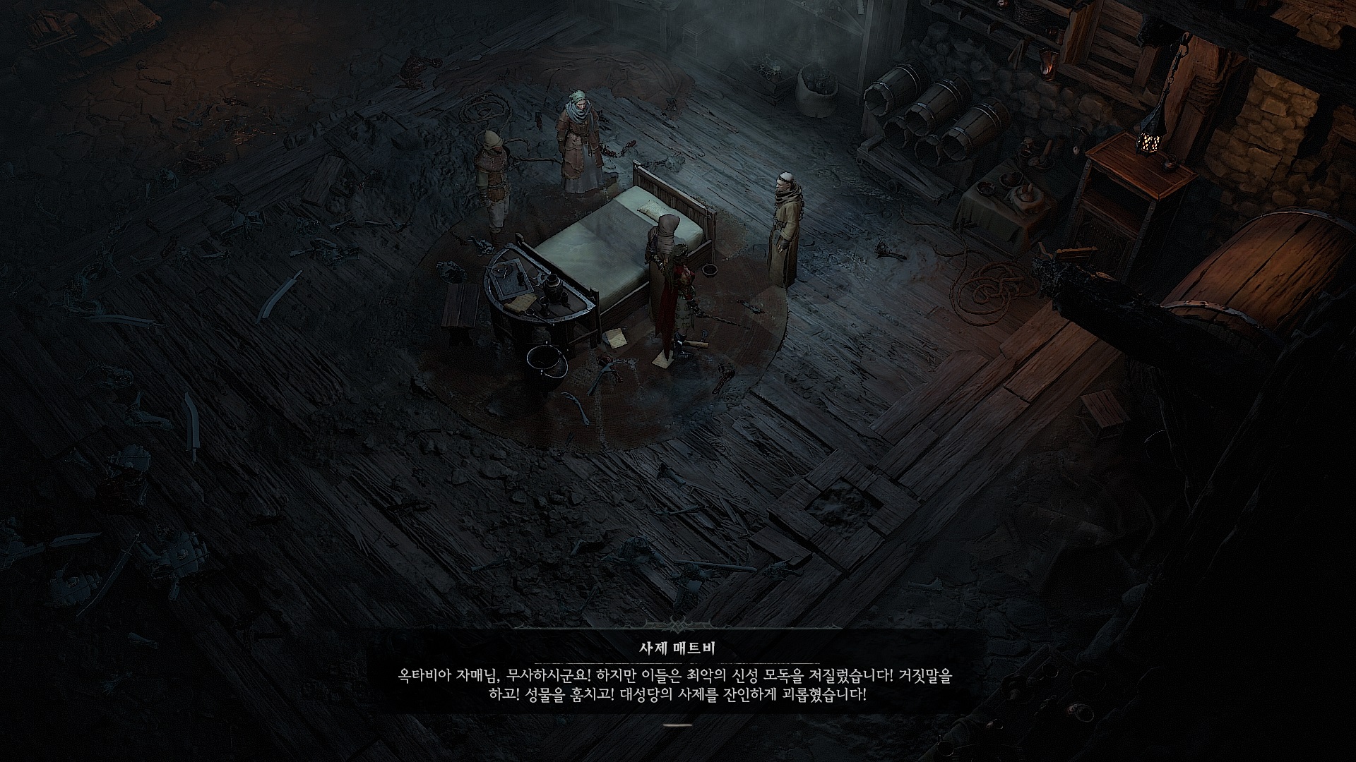마그레이브의 사제 매트비에게 성물을 달라고 하자 깐깐하게 군다.