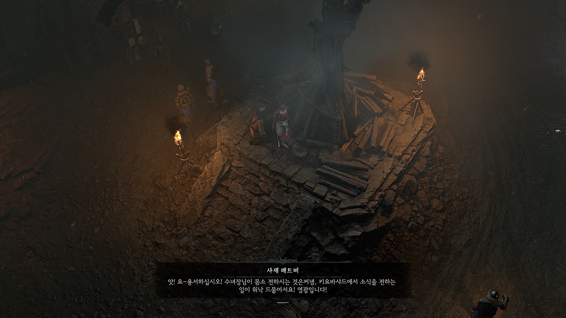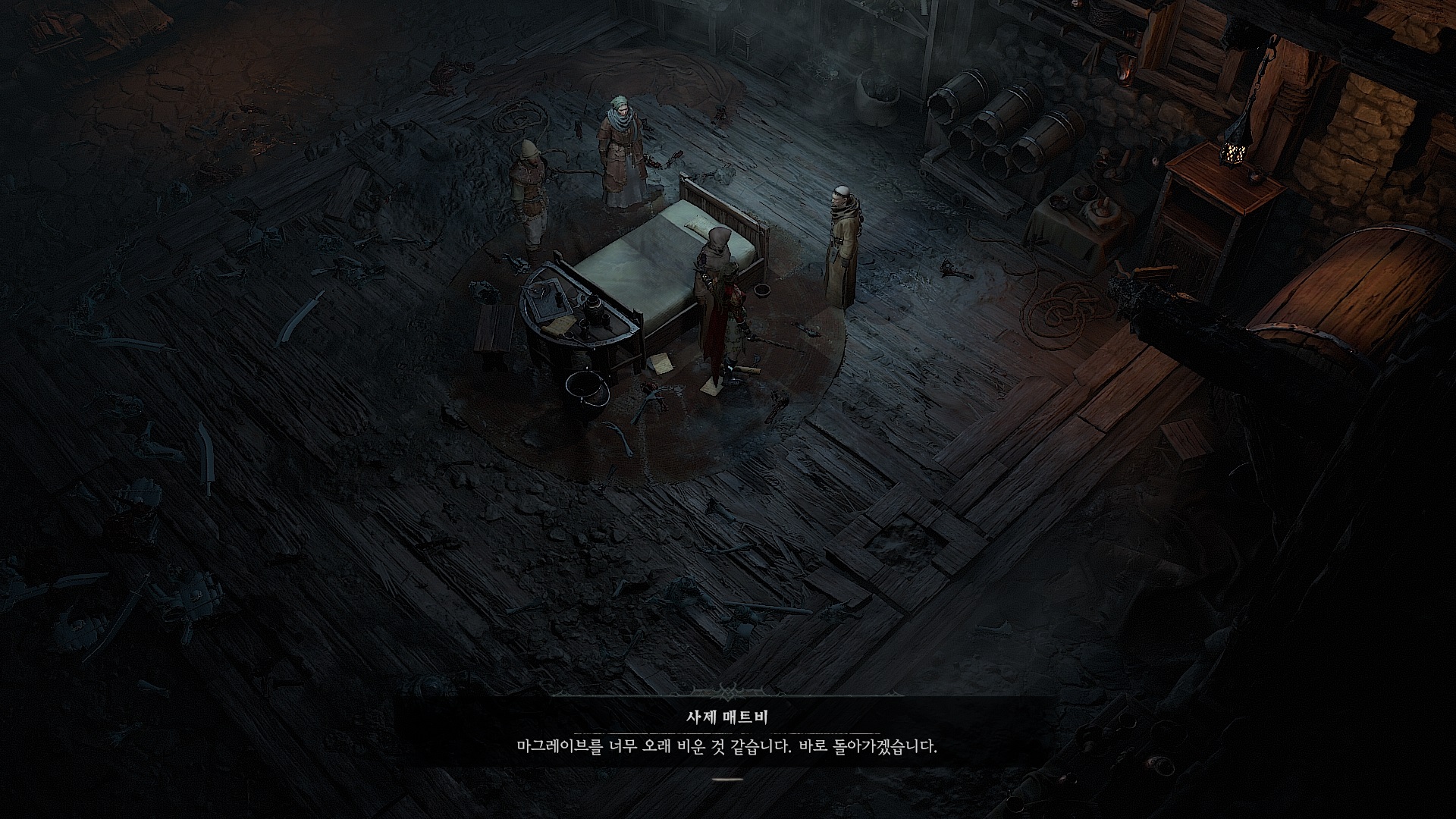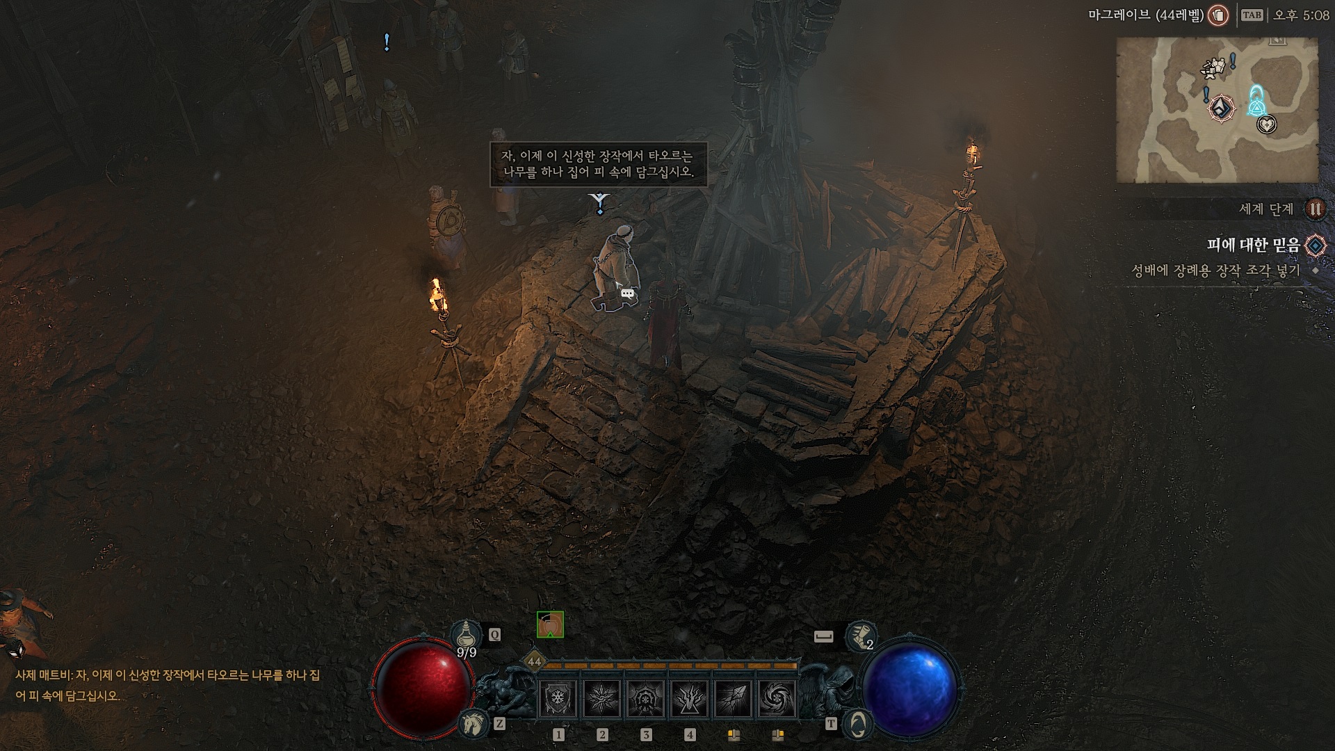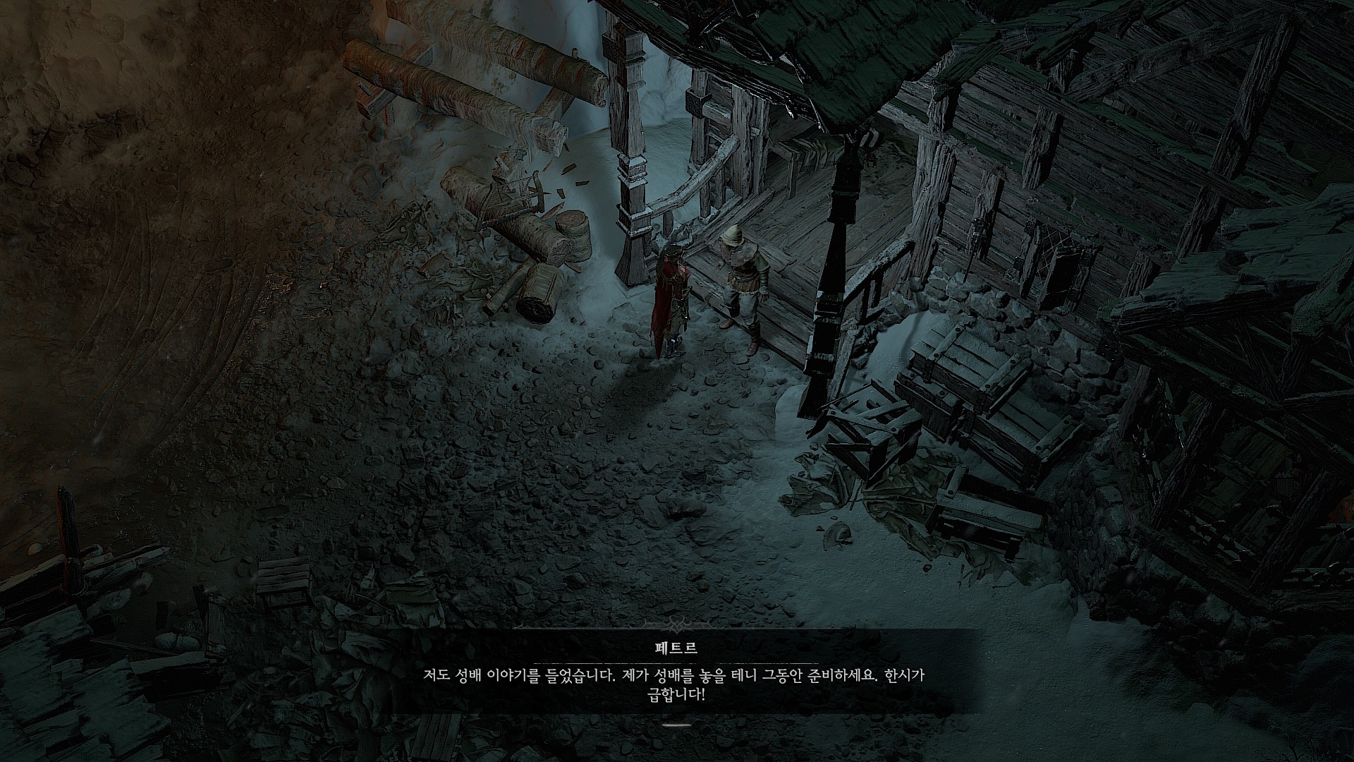 마그레이브의 사제 매트비에게 성물을 달라고 하자 깐깐하게 군다.