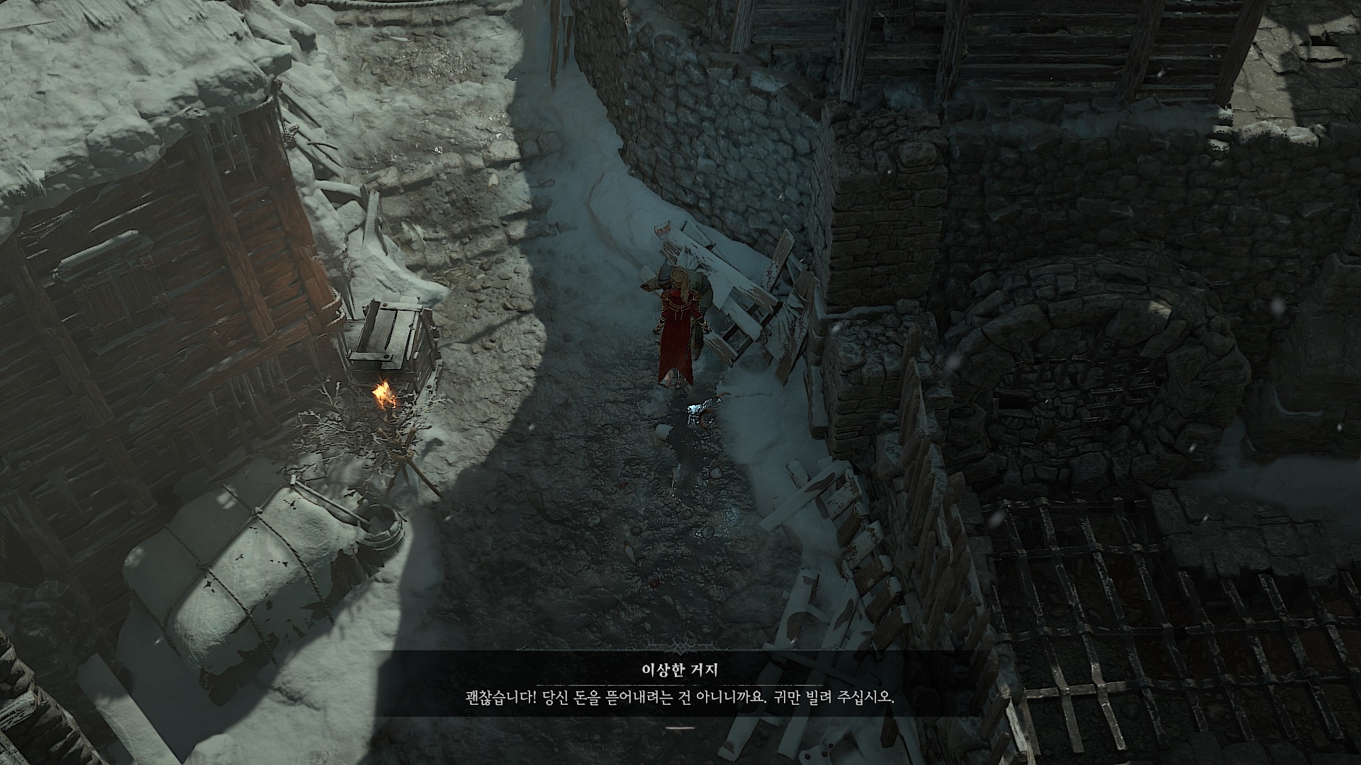 이상한 거지에게 동전을 주자. 그러면 문이 위험하다 어쩌구저쩌구.. 아니 근데 문에 대해서 왜 이렇게 걱정하지?
