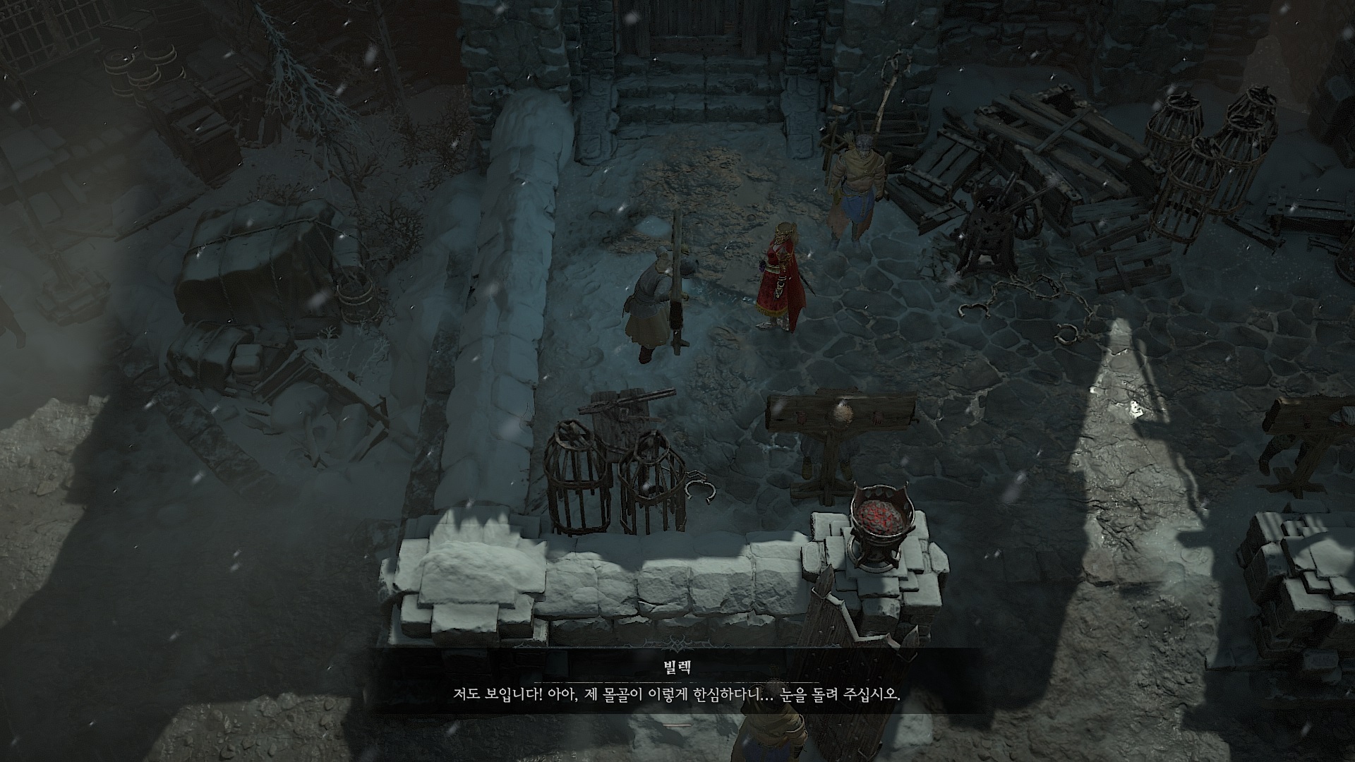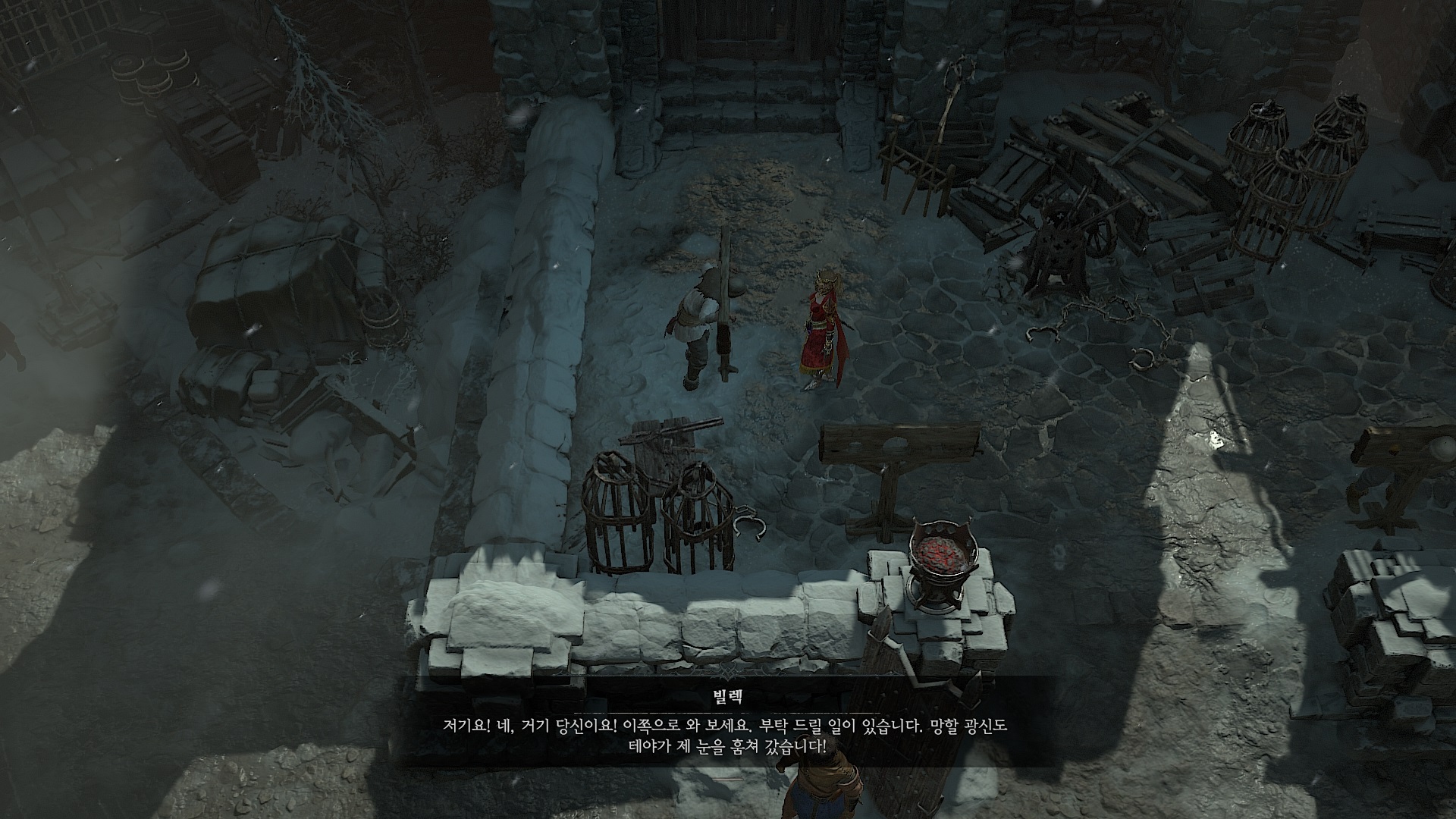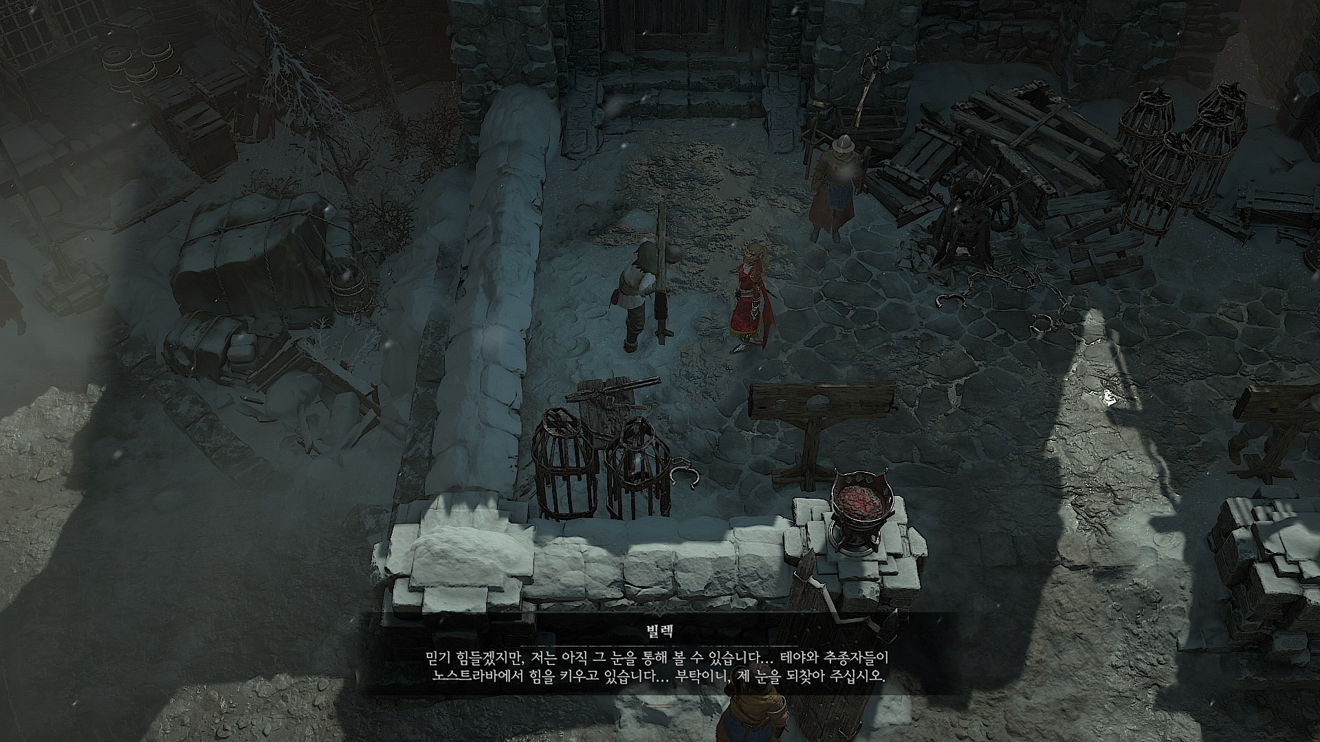 빌렉에게 갖다 주면 퀘스트는 완료되고 보상으로 폐품 보관함을 준다. 계속 서 있으면 빌렉이 자신의 눈을 넣는데...