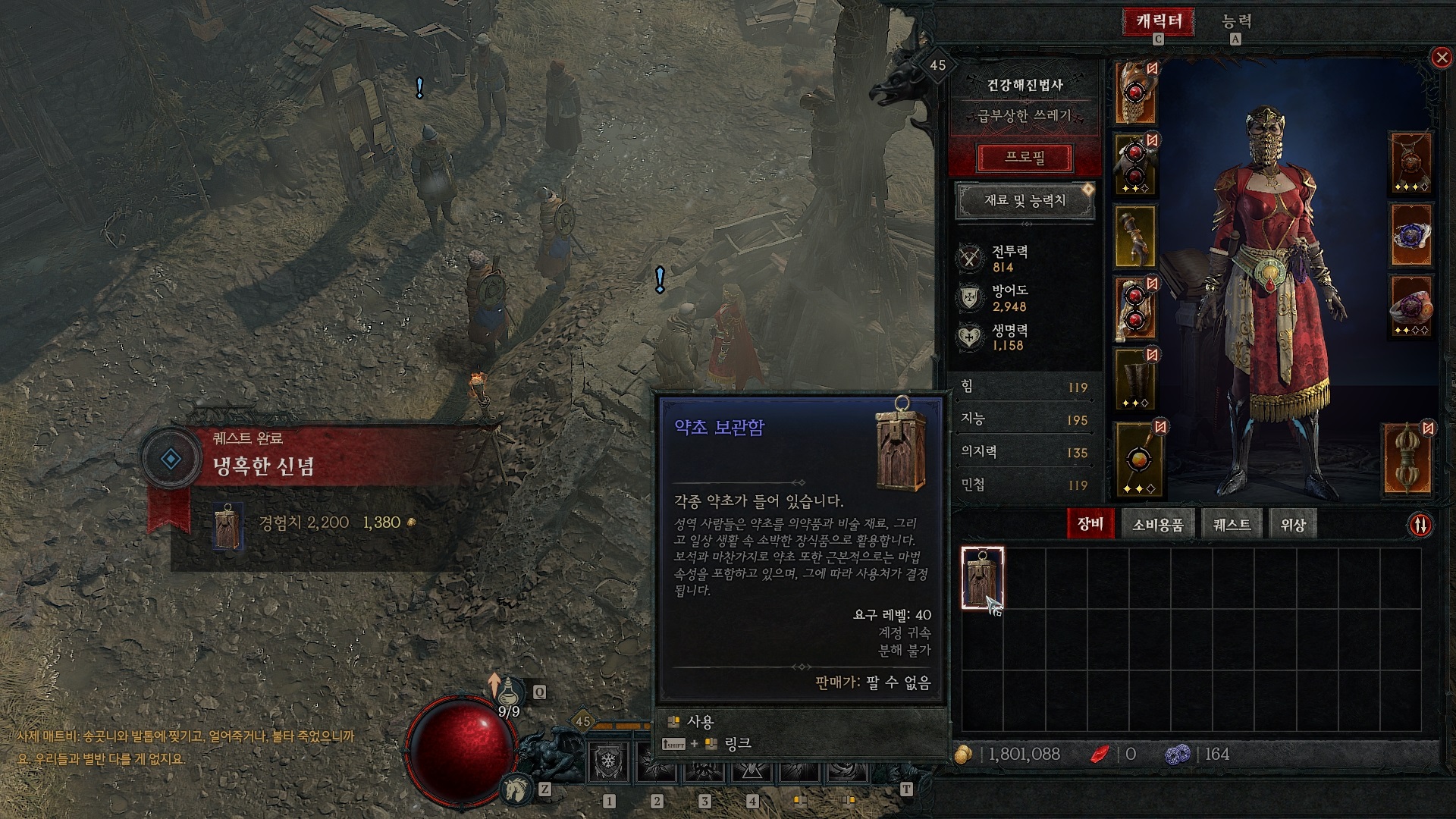 종교가 뭔지.. 믿음이 뭔지... 하여튼 약초 보관함을 보상으로 준다.