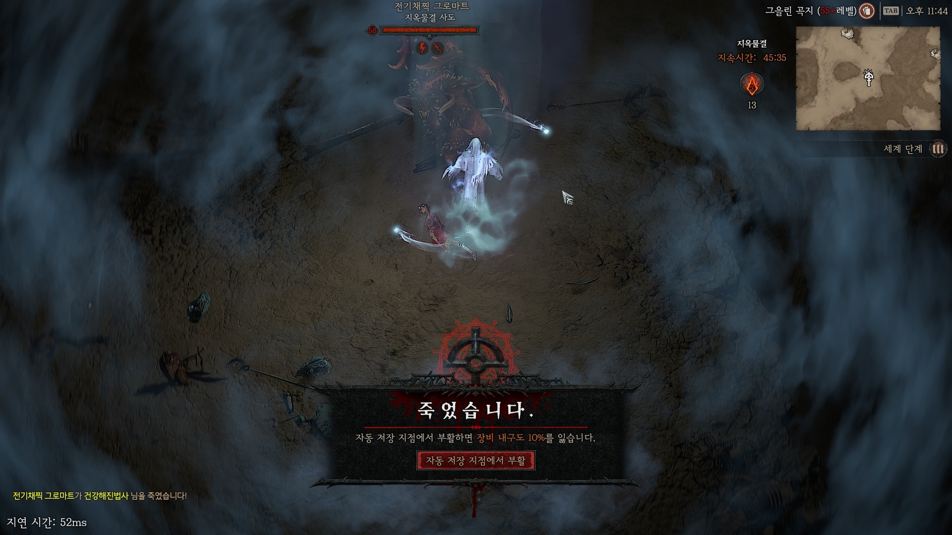 그리고 시즌 1이 열리고.. 46렙에 관장 때려 잡고 넘어간 악몽...