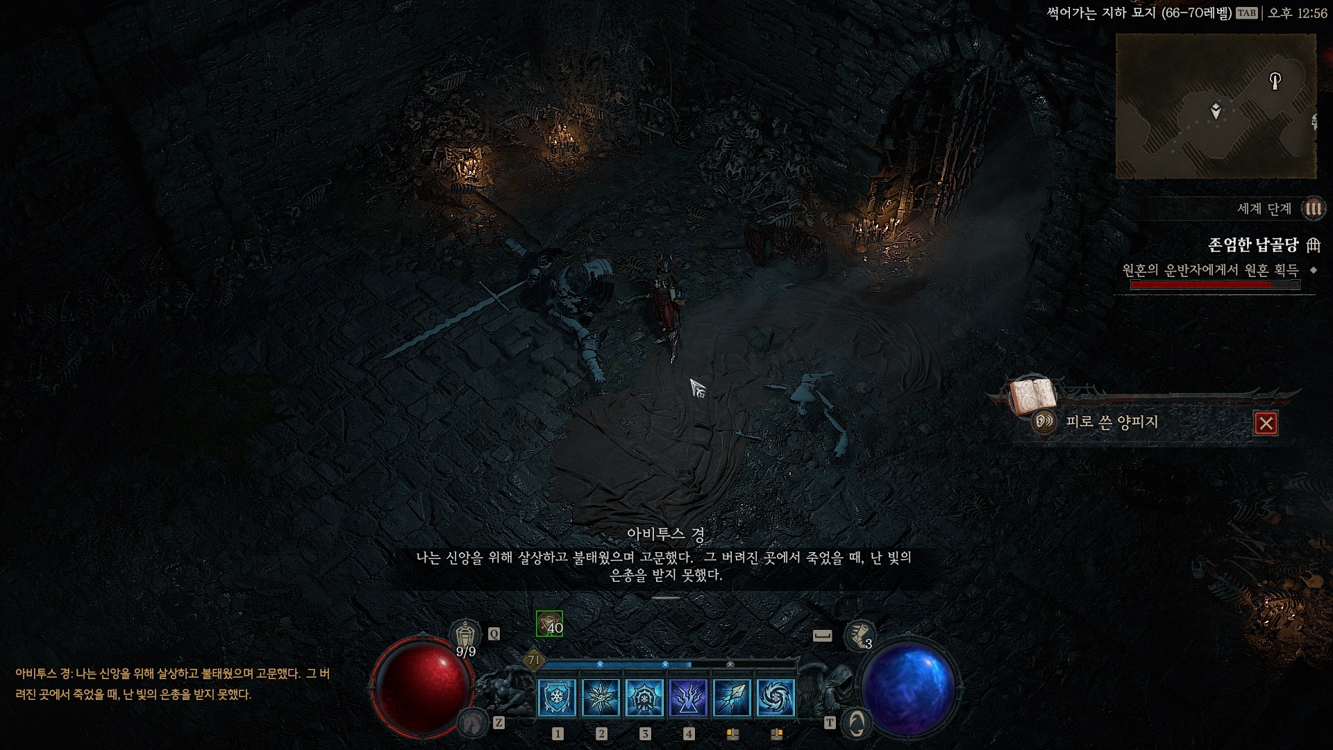 존업한 납골당 내부에서 아비투스 경을 찾아 처치하면 퀘스트는 바로 완료된다.