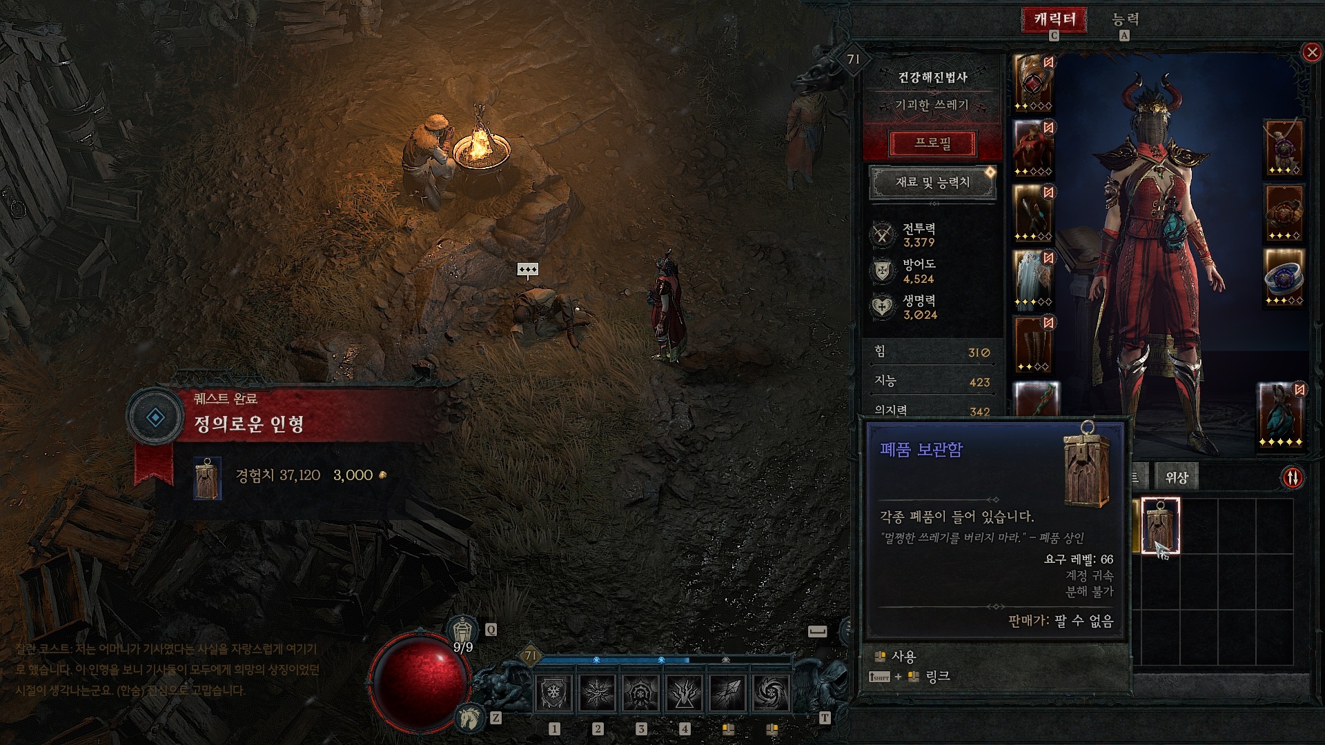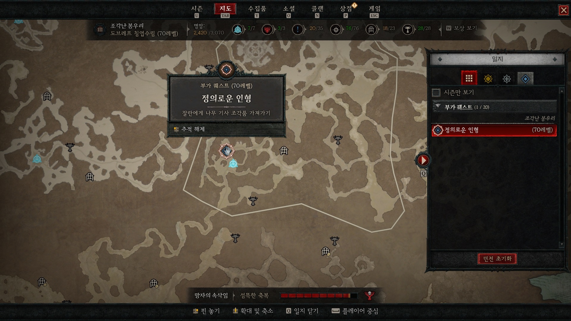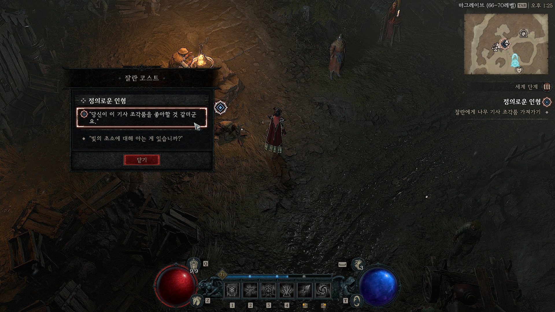이 나무 기사 조각품을 만든 목공예가에 대해 말해주면서 퀘스트 완료. 폐품 보관함을 보상으로 준다.