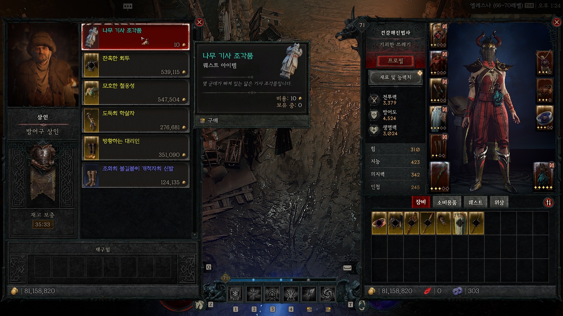 츠베미르는 10골드에 '나무 기사 조각품'이란걸 판다. 이걸 구매하자.