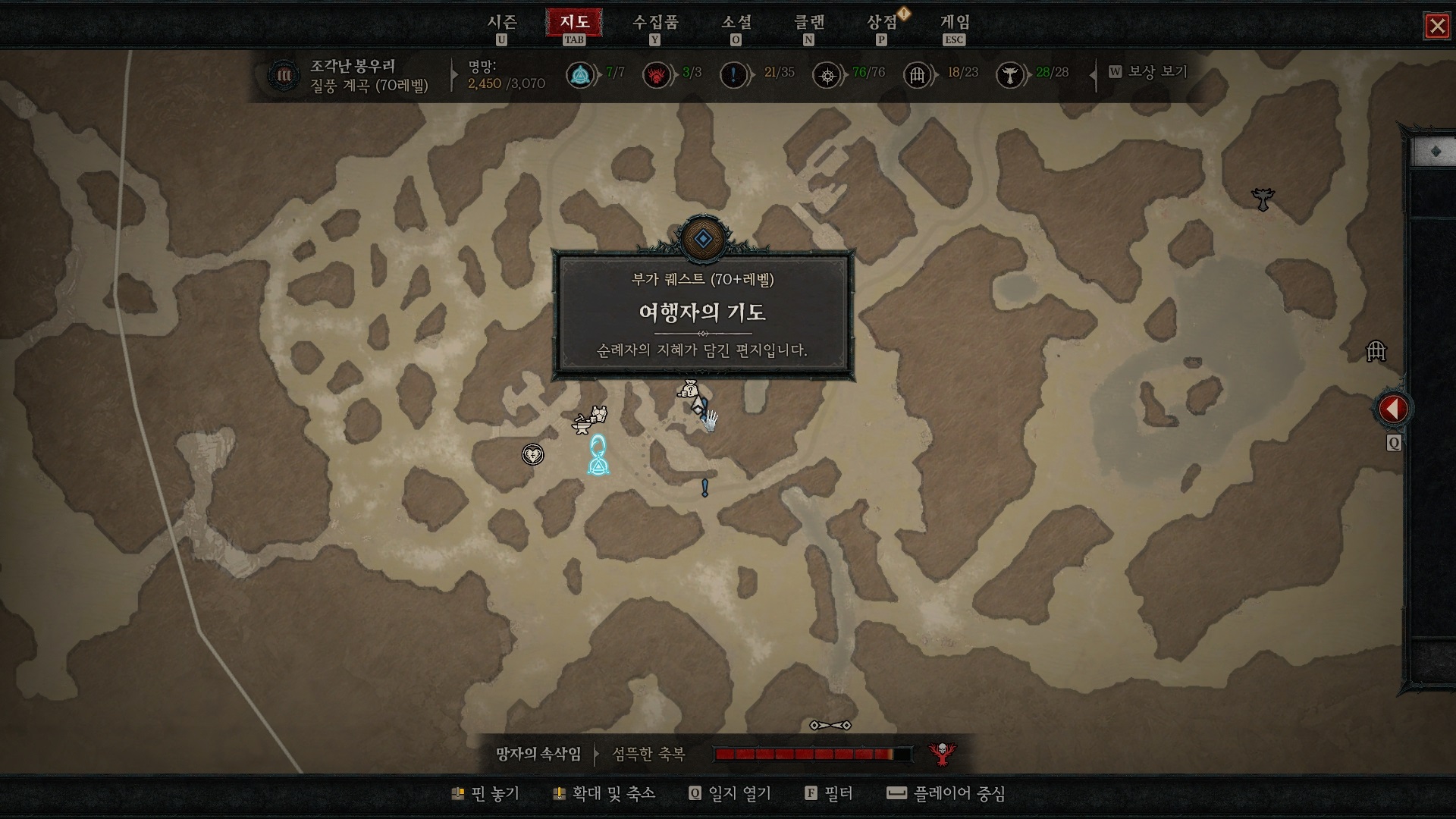 순례자의 보급품이 나오고 클릭시 비약이 나오면서 퀘스트는 완료된다.