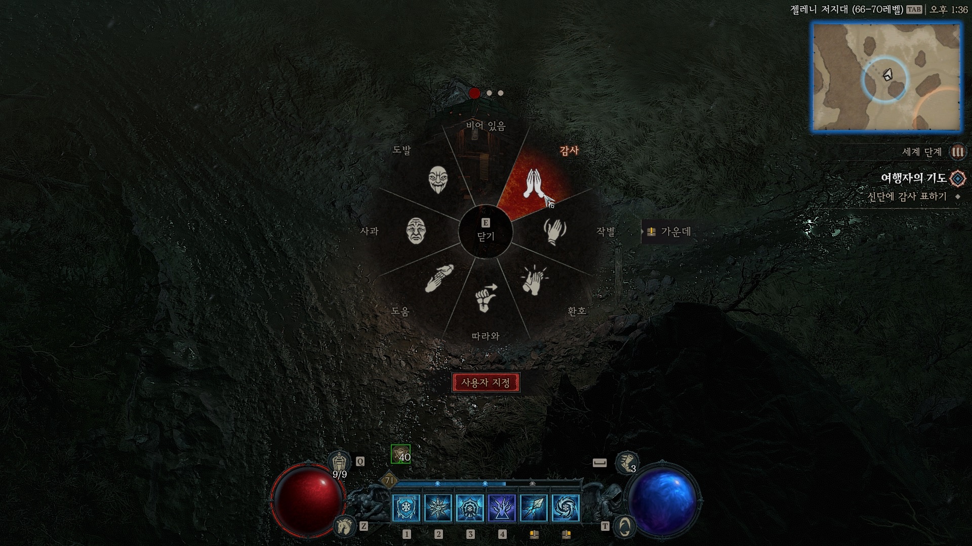 이 앞에서 E 키를 눌러 감정 표현 중에 '감사'를 선택하자.