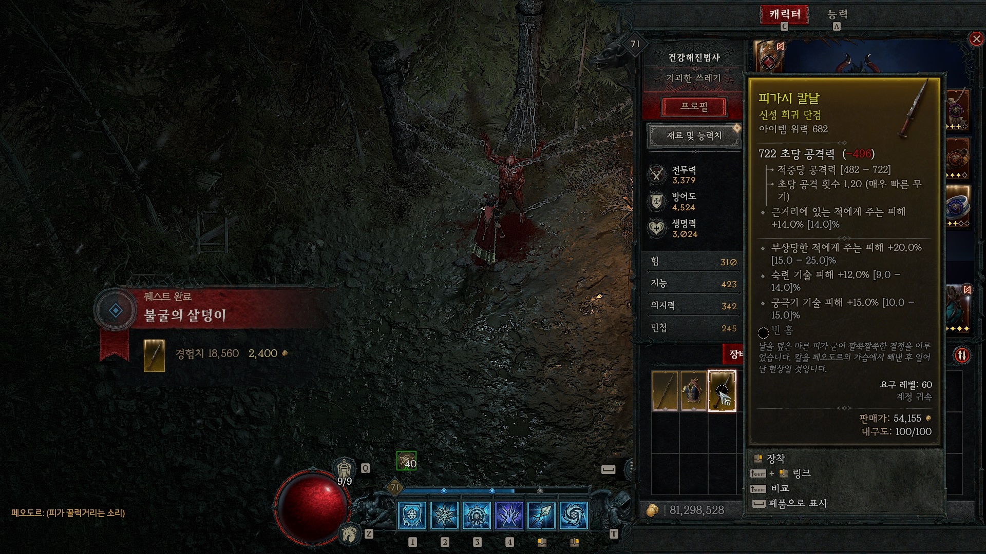 피가시 칼날이라는 단검을 퀘스트 완료 보상으로 얻게 된다. 아.. 이게 난이도에 맞춰서 나오는 모양이구나. 혹시나 이런 단검이라도 필요하다면 고행에서 완료하는걸 추천. 고행에선 아마 선조가 나올듯...