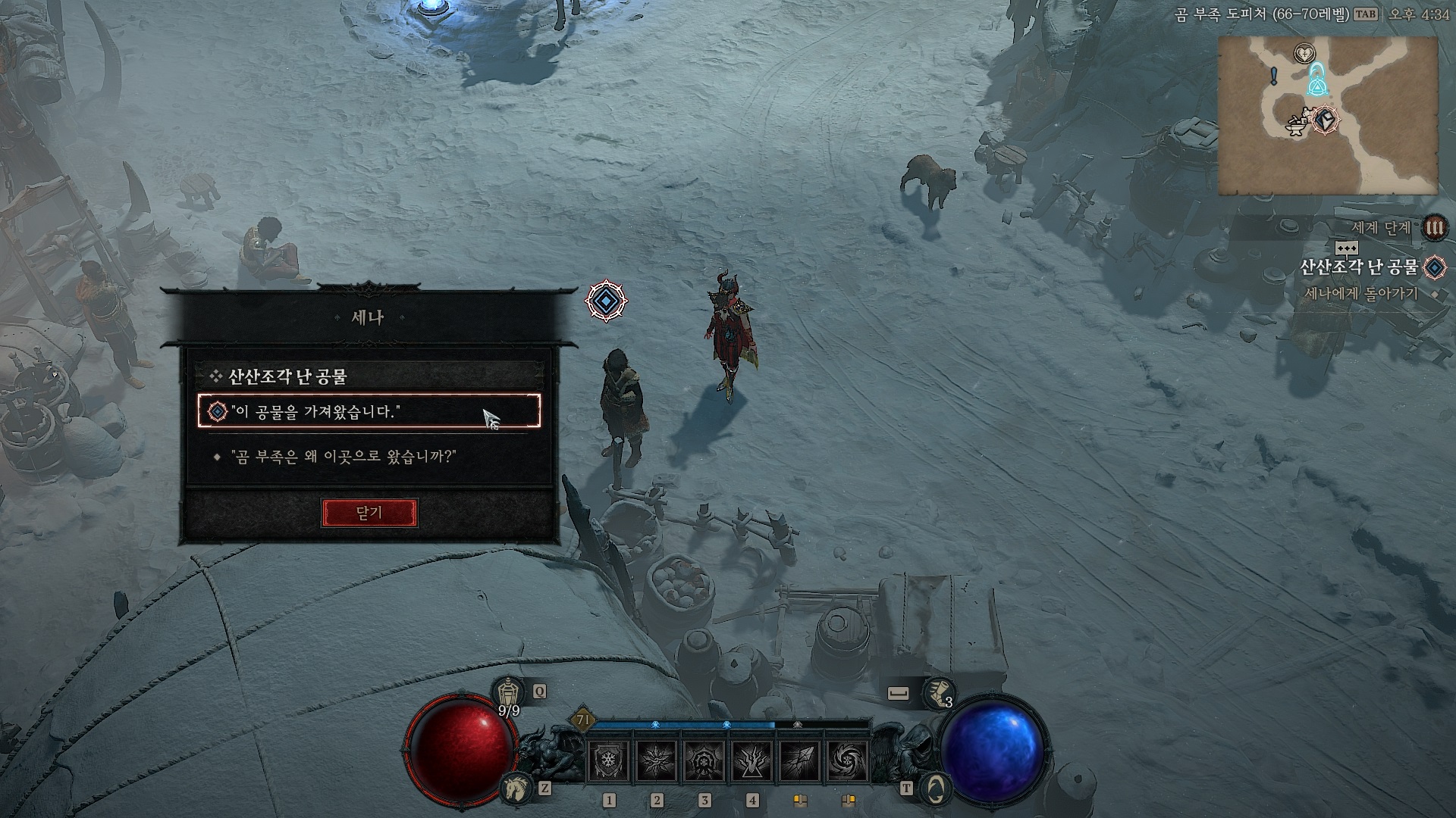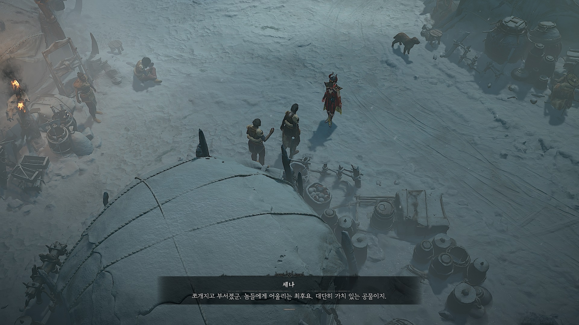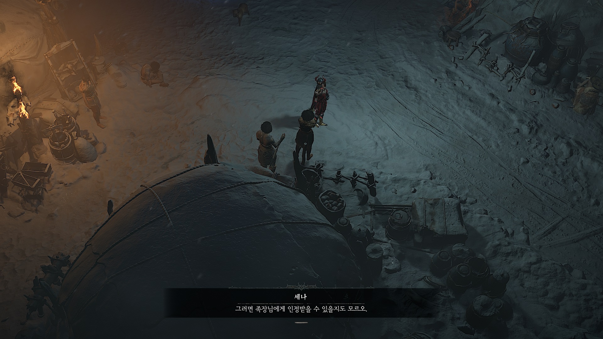 곰 부족 도피처의 세나와 말을 걸면 퀘스트가 시작된다.