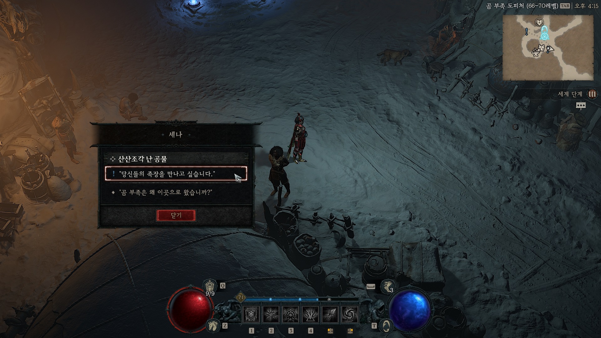 곰 부족 도피처 북쪽의 흰서리의 최후 던전으로 간다.