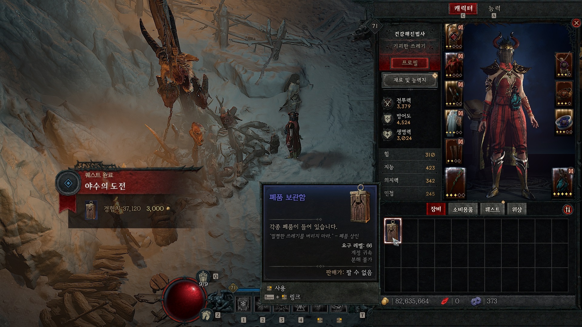 카울러의 머리를 장식하고 나면 퀘스트가 완료 되며 폐품 보관함을 보상으로 준다.