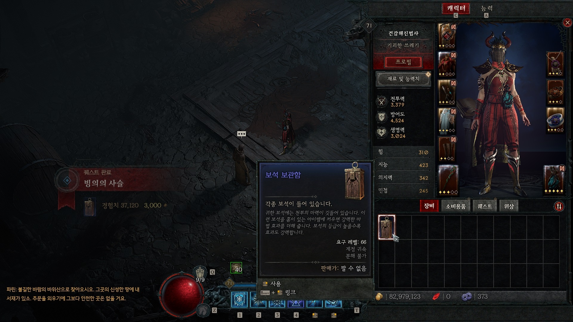 막달레나를 처치하고 나면 파린이 다시 나타난다. 대화를 하면 도끼를 파괴하기전에 날에 깃든 악을 정화해야 한다고 한다. 퀘스트 완료 보상으로 보석 보관함을 주며 '사라진 유산' 퀘스트가 바로 시작된다.