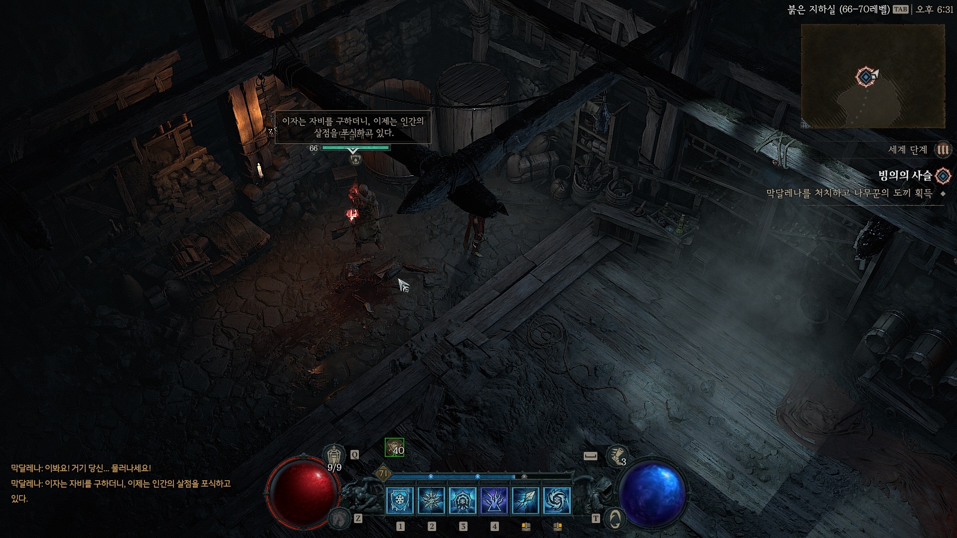 지하실 안에는 막달레나가 있다. 네베스크의 나무꾼이라는 퀘스트에서 가져갔던 그 나무꾼 도끼 때문에 저렇게 변한 모양이다.