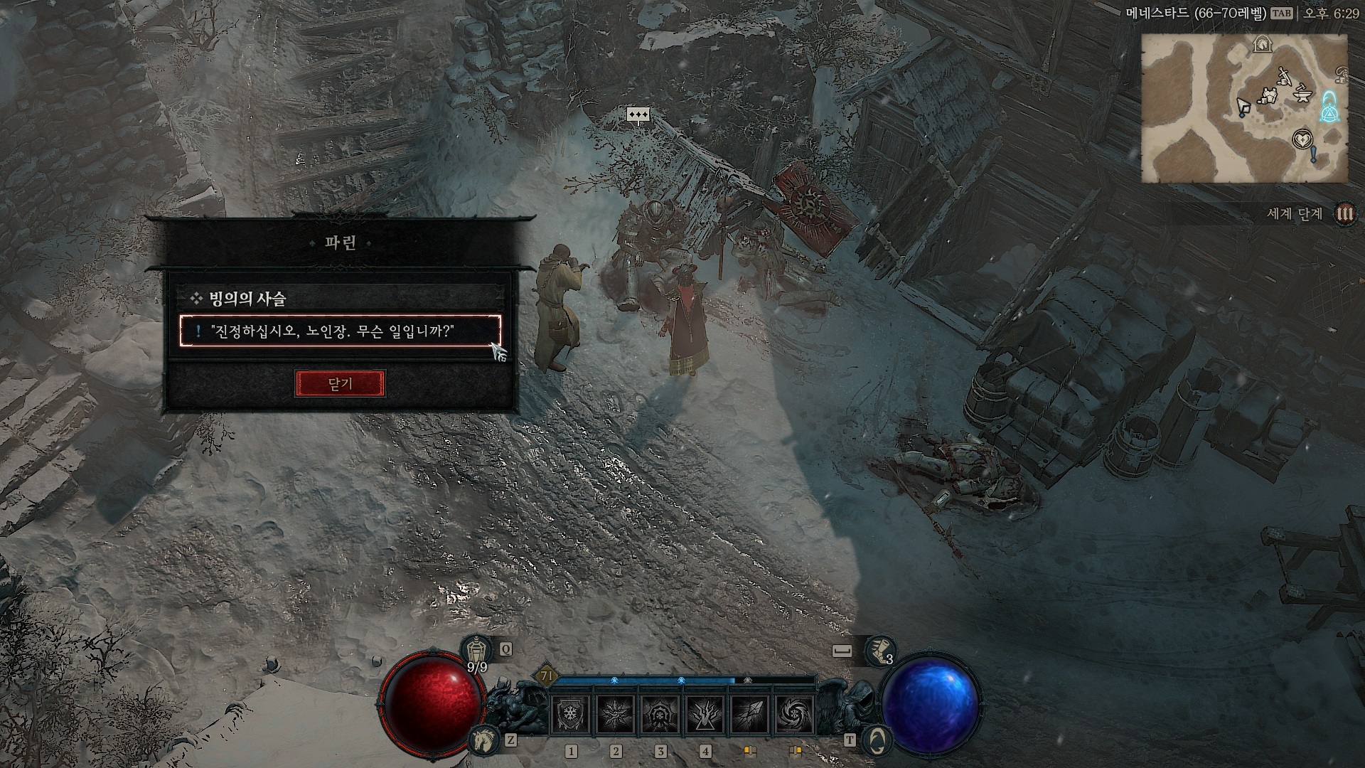 파린에게 무슨일인지 물어본다. 도끼를 든 여자들이 기사들을 절단을 내놨다는 것.. 도끼가 저주 받았다고 하는데 뺏어 오라고 한다.