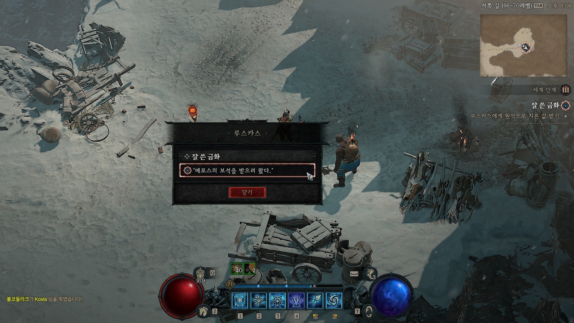 루스카스를 처치 후 원석으로 치른 값을 줍자. 이제 메르스에게 가보자.