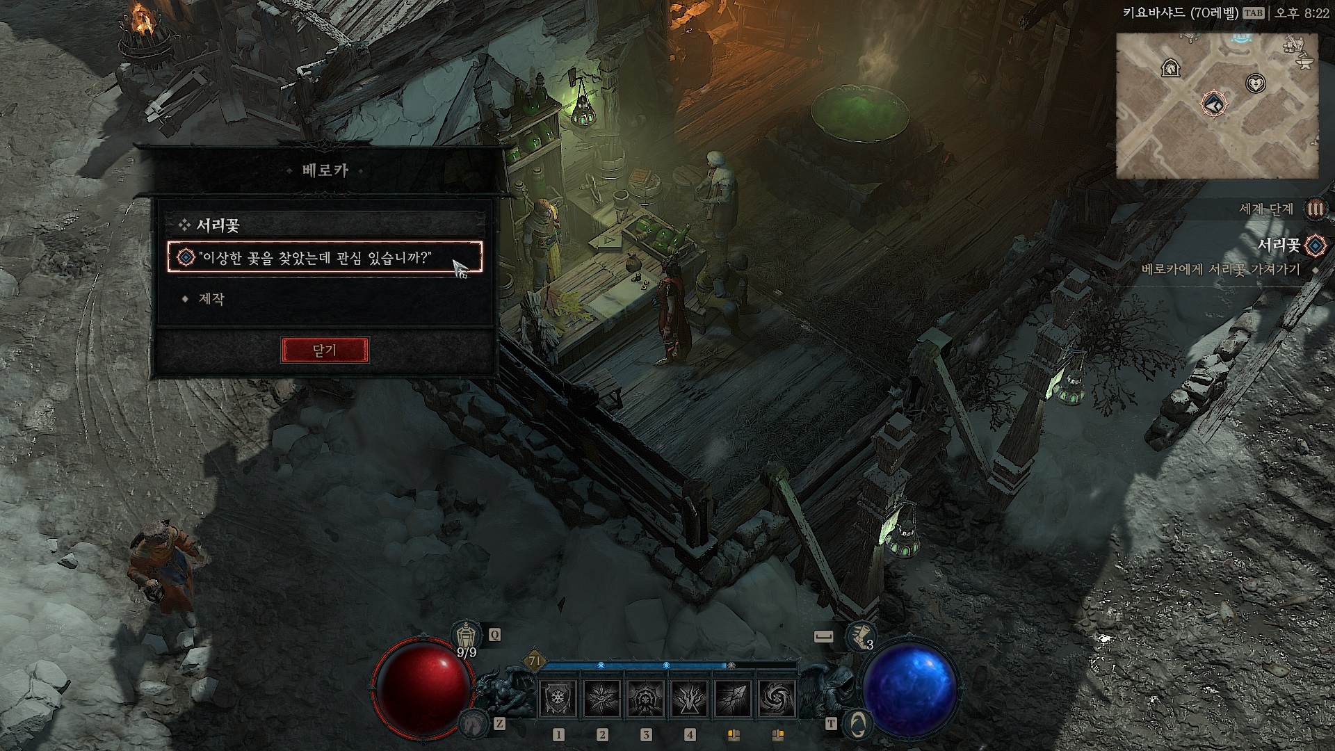 약초를 채집하다보면 '서리꽃'이란걸 준다. 이걸 획득하면 퀘스트 시작.