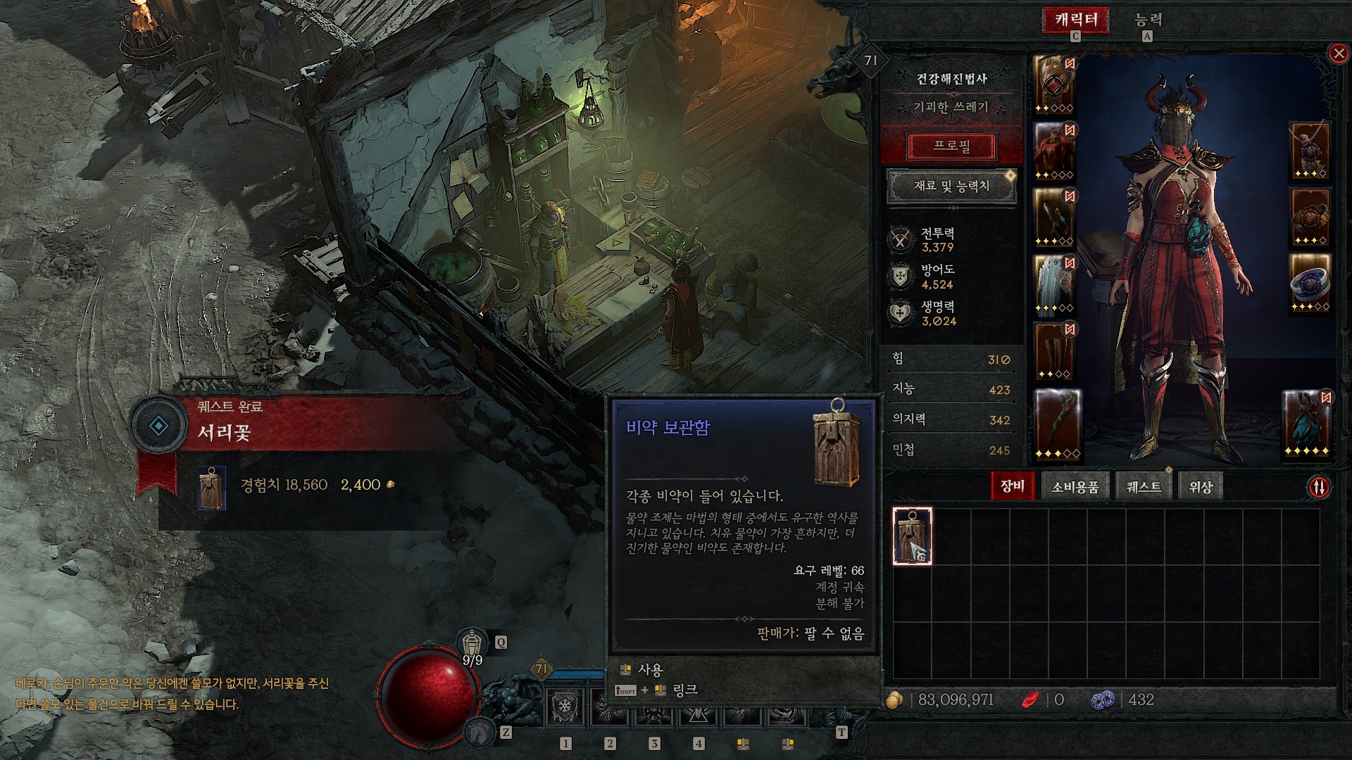 대화를 하면 퀘스트가 완료되고 비약 보관함을 보상으로 준다.