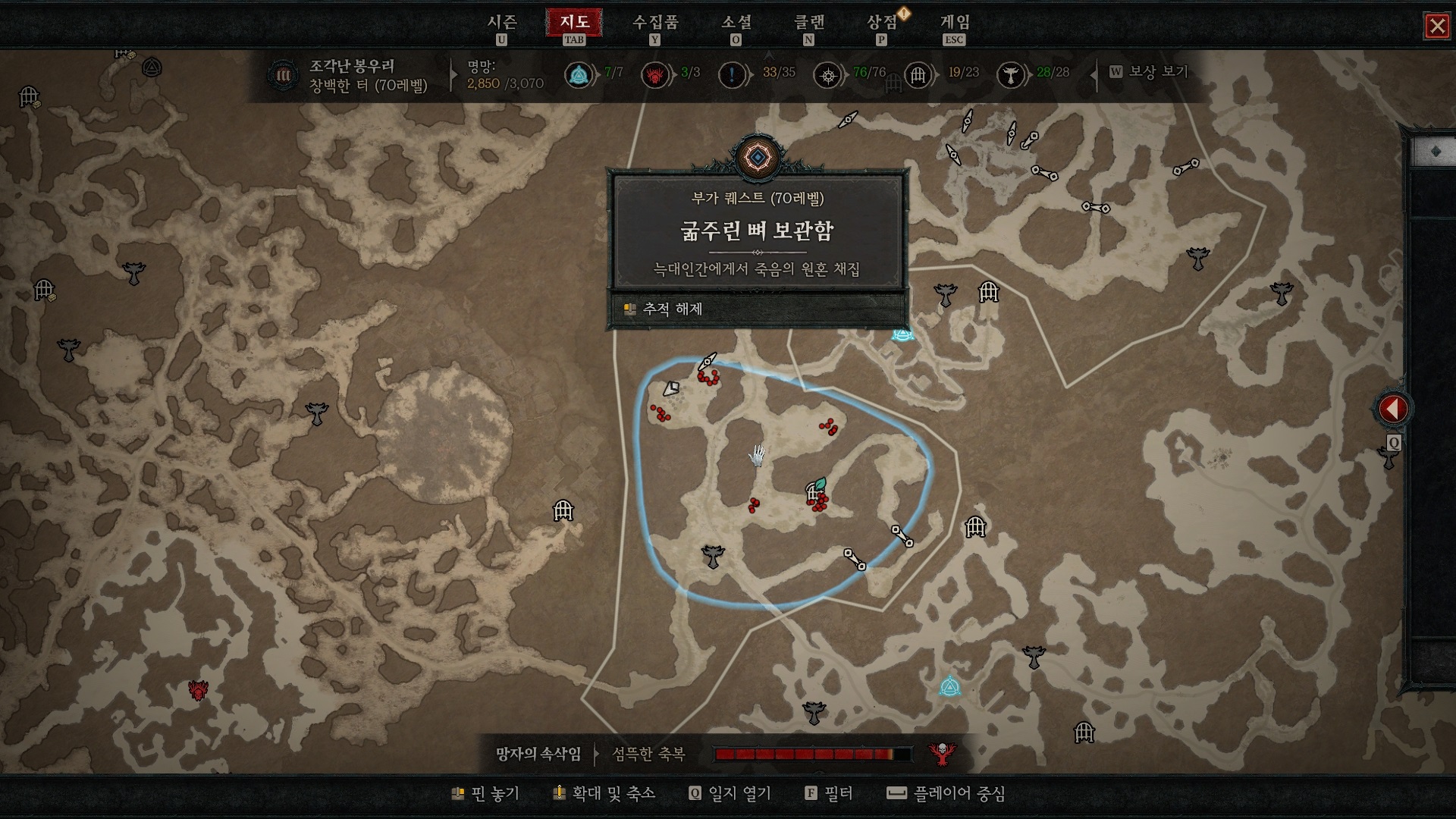 창백한 터에서 시체나 보관함을 열다보면 일정 확률로 '굶주린 뼈 보관함'이 나온다. 이걸 줏으면 퀘스트가 시작된다. (노스트라바 서쪽 민병대 시체에서 나왔다.)