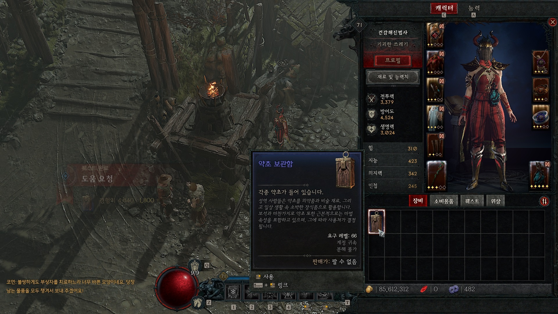 코먼은 남는 부품을 모두 보내준다고 한다. 완료 보상으로 약초 보관함을 준다.