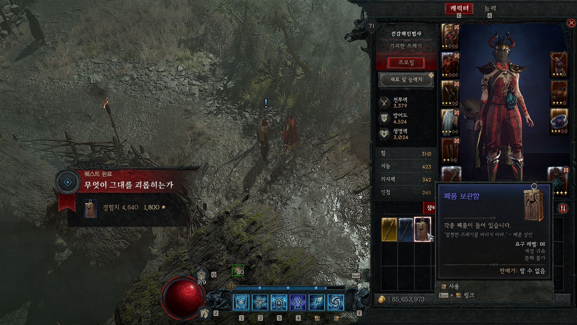 대화가 끝나면 퀘스트가 완료되고 폐품 보관함을 보상으로 받게 된다.