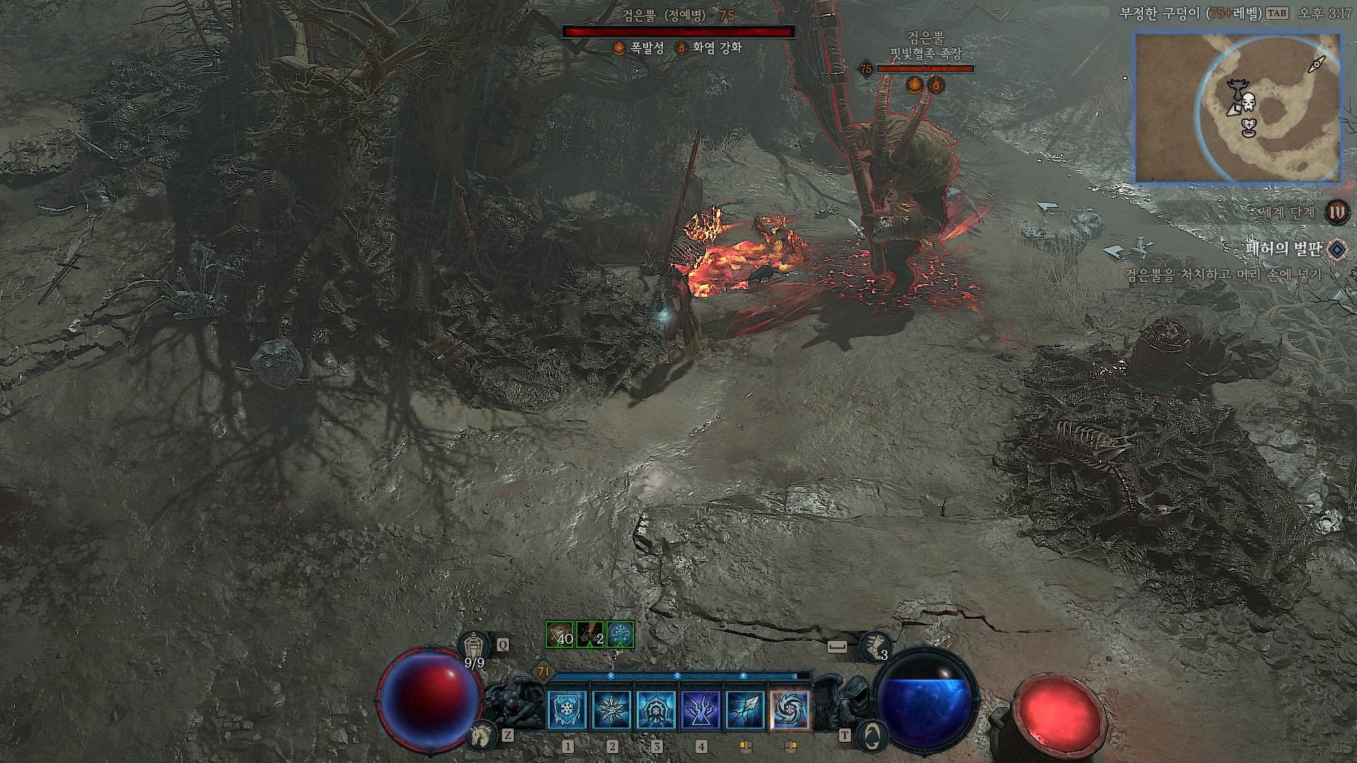 부정한 구덩이에 진입해서 염소인간들을 때려잡는다. 오른쪽 빨간 그래프가 가득차면 검은뿔이 나온다. 검은뿔을 처치하고 머리를 가지고 다시 펠란에게 돌아가자.