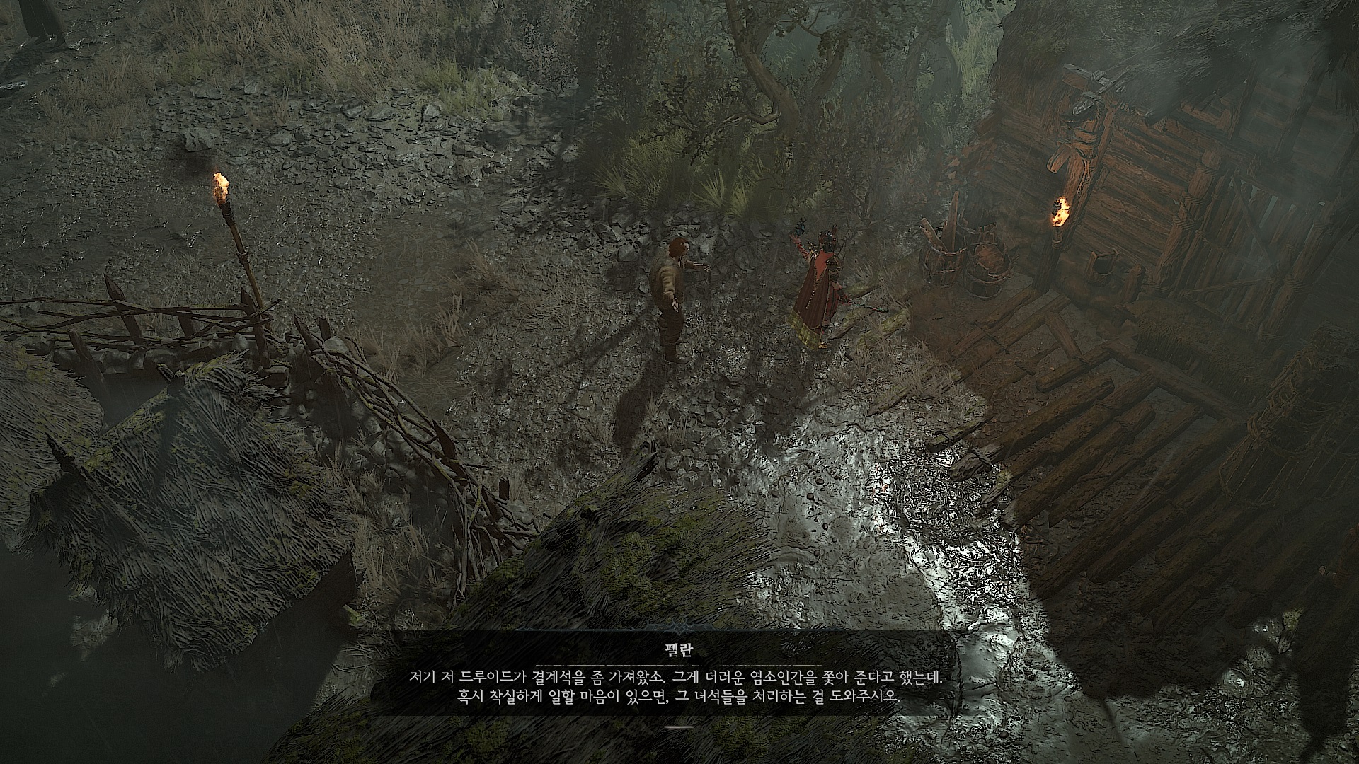 무슨 일인지 물어보면 염소인간이 쳐들어와서 까칠한 상태. 드루이드가 가져온 결계석을 설치해야 한다.