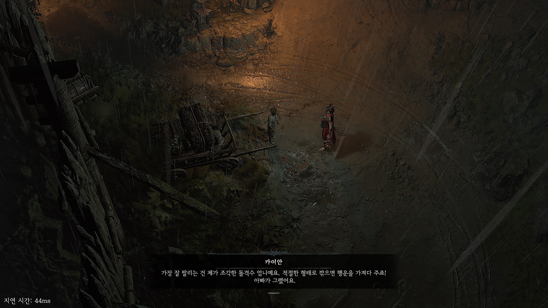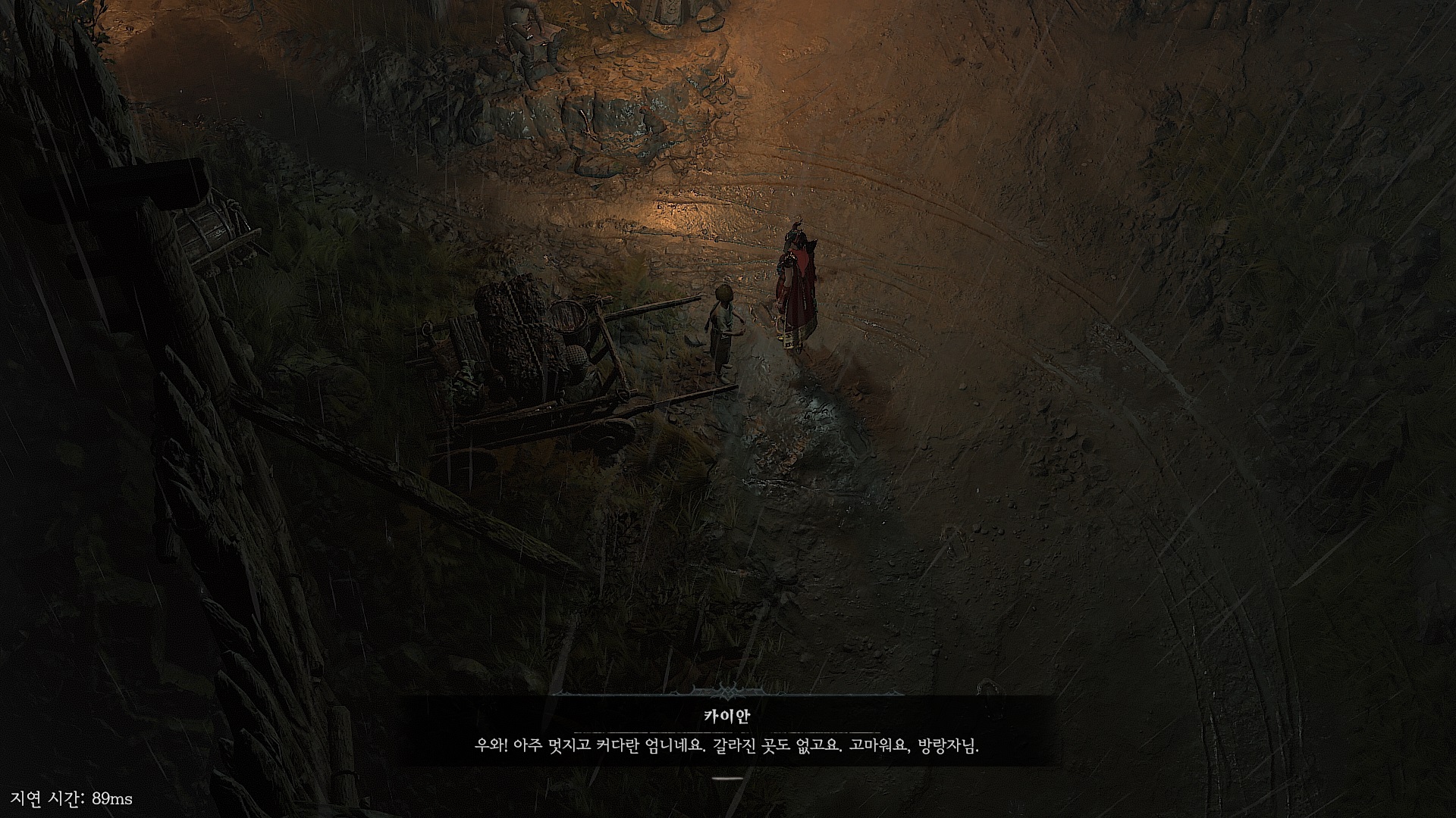 카이안에게 뭘 팔고 있는지 물어본다. 조각한 돌격수 엄니가 핫 아이템이라는데, 엄니가 떨어져서 구해 달라고 한다.